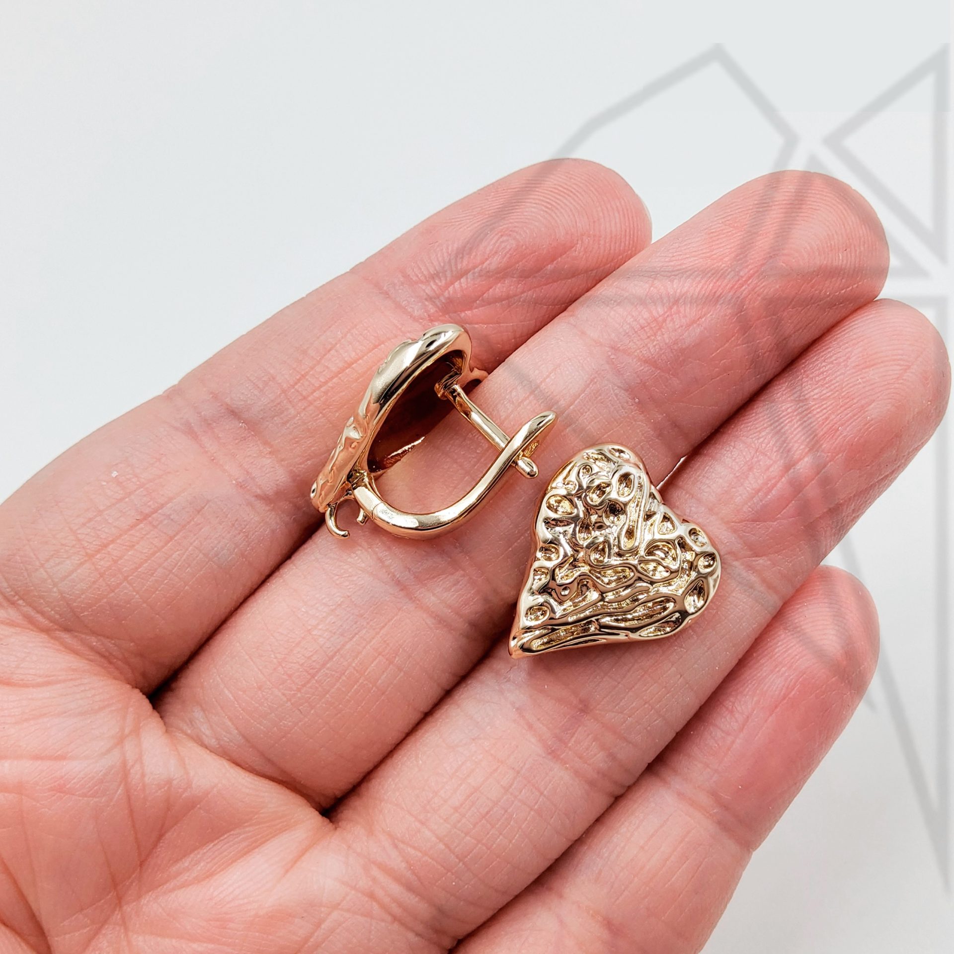 Швензы в форме фактурного сердца с английским замком 17 мм класса люкс с позолоченным покрытием (по латуни).