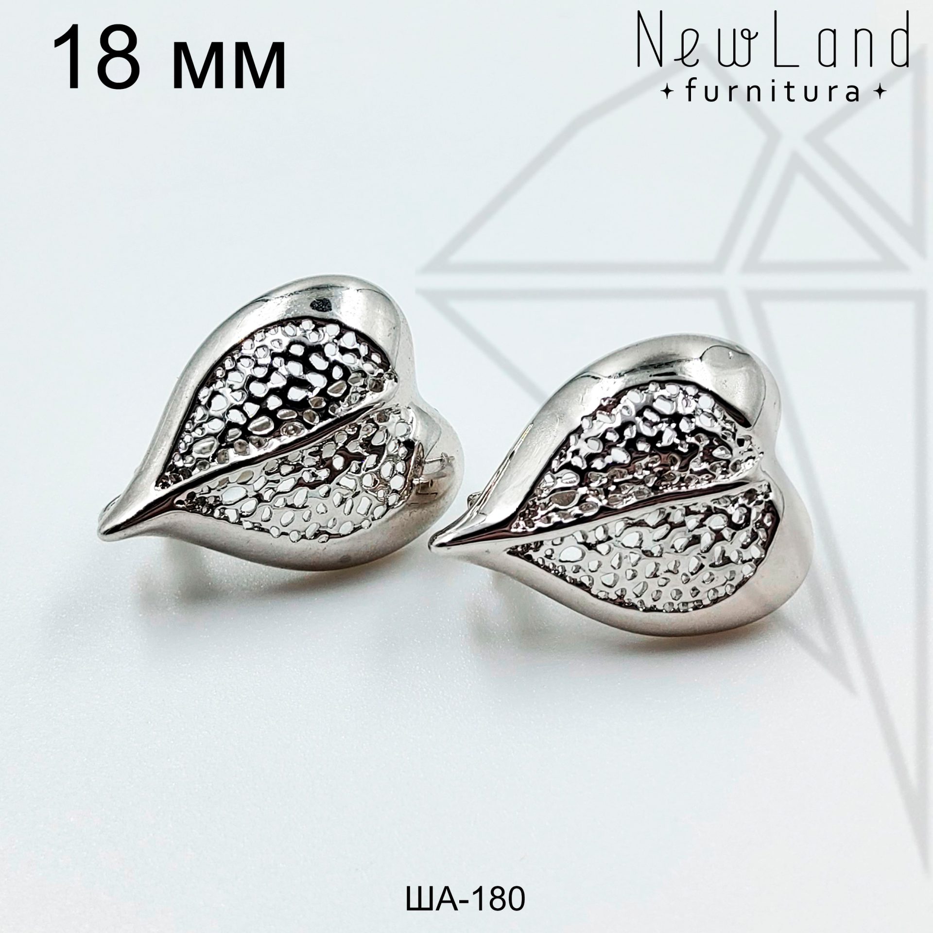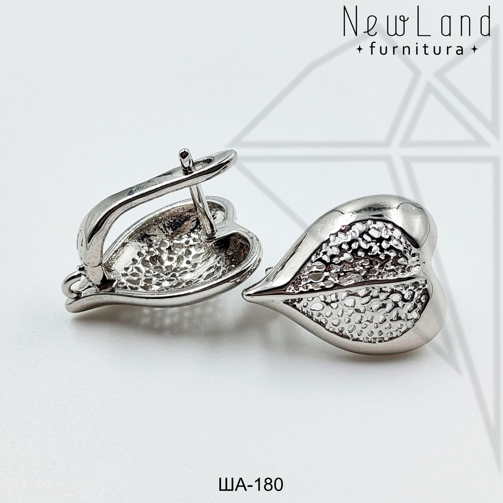 Швензы в форме ажурного листика с английским замком 18 мм класса люкс с родированным покрытием (по латуни).