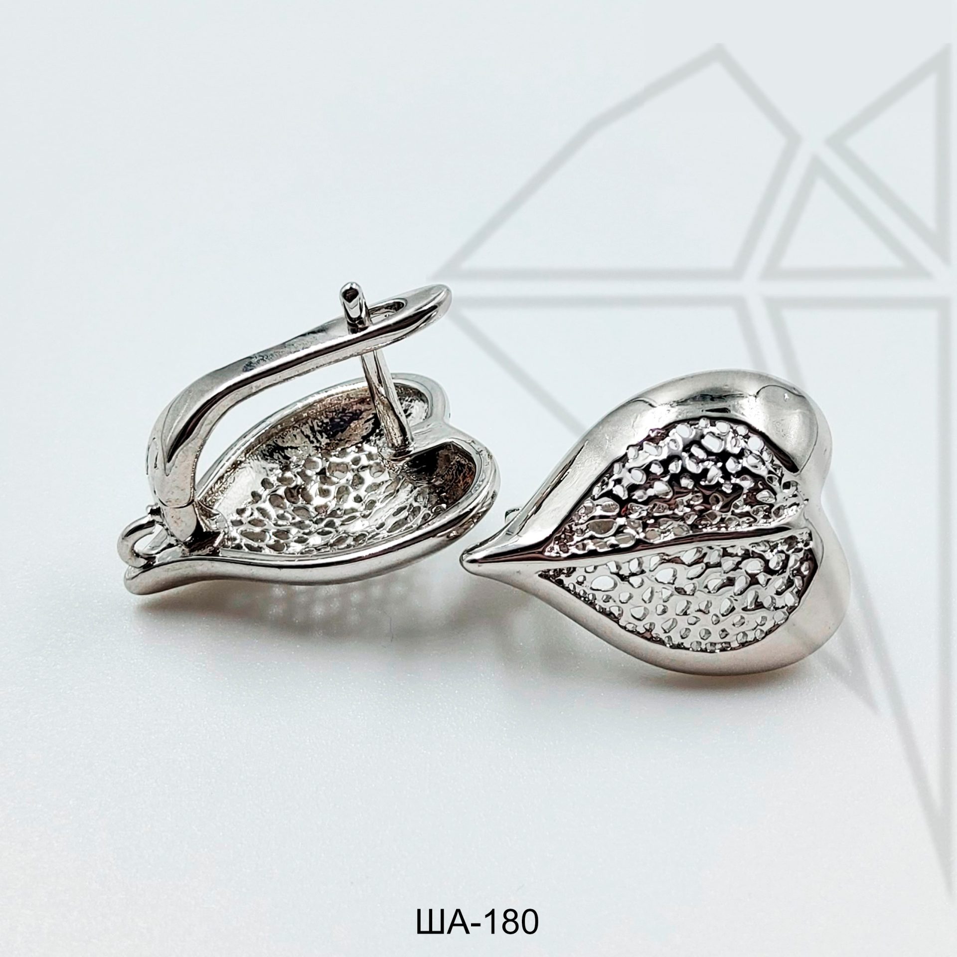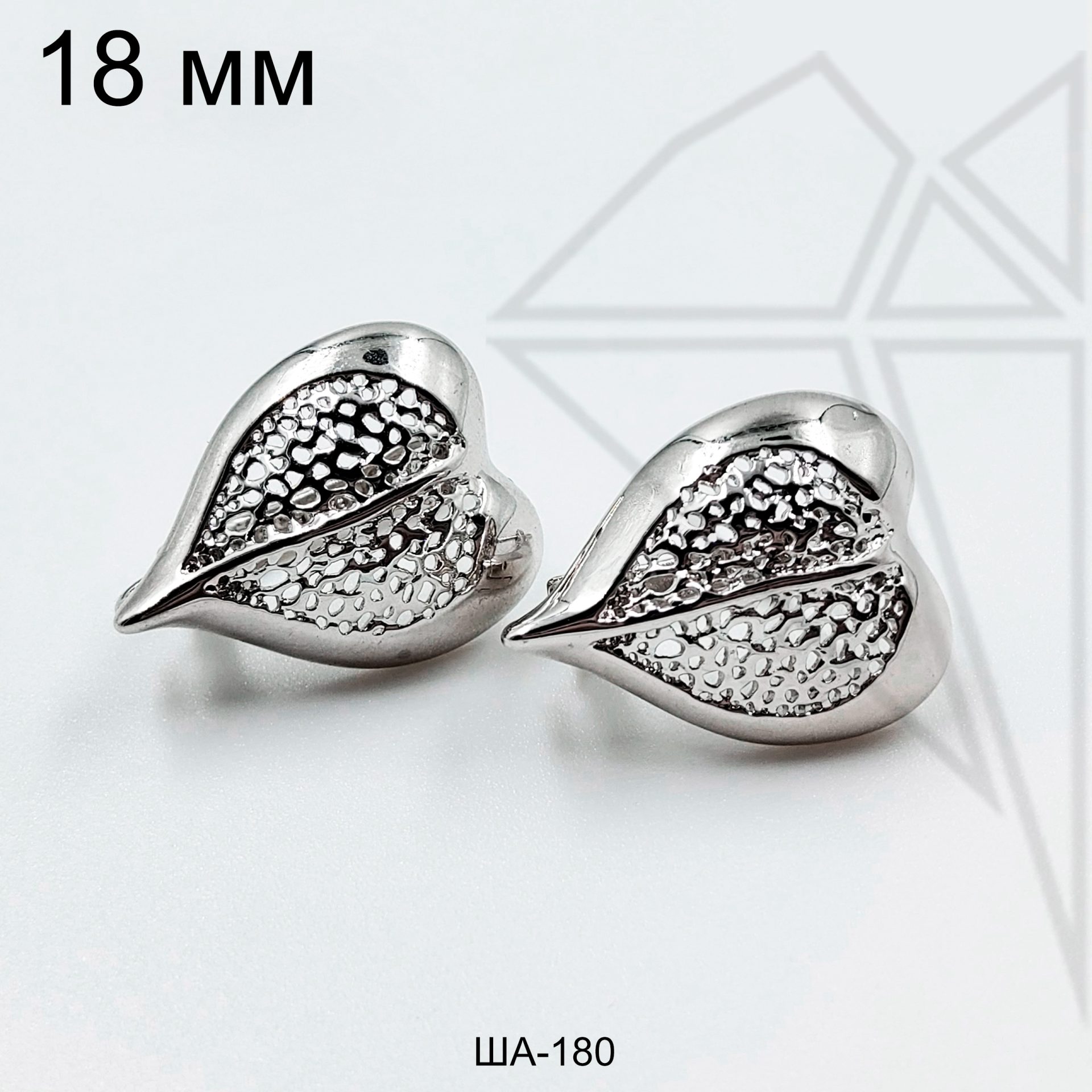 Швензы в форме ажурного листика с английским замком 18 мм класса люкс с родированным покрытием (по латуни).