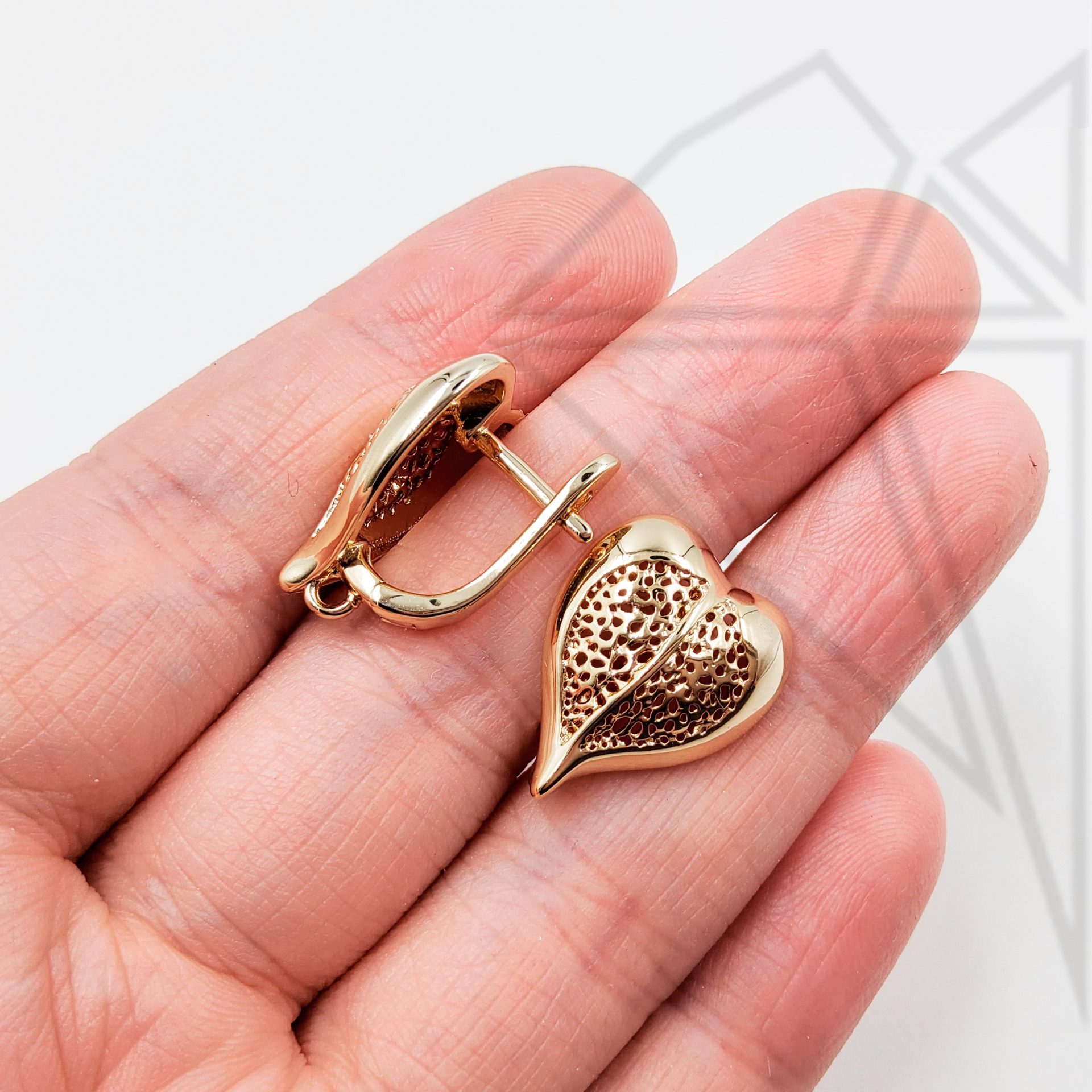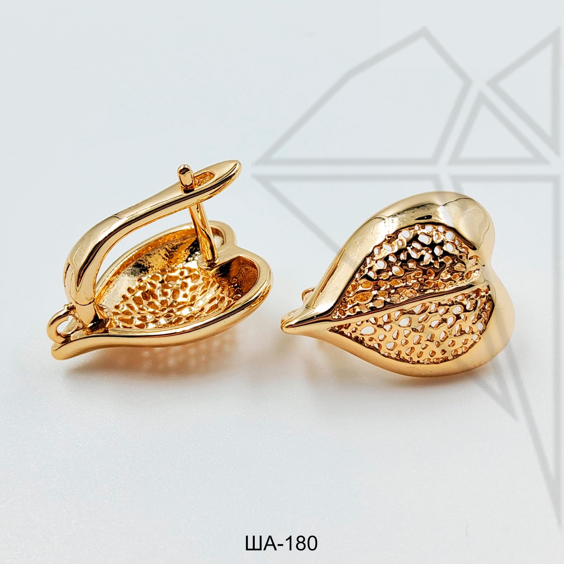 Швензы в форме ажурного листика с английским замком 18 мм класса люкс с позолоченным покрытием (по латуни).