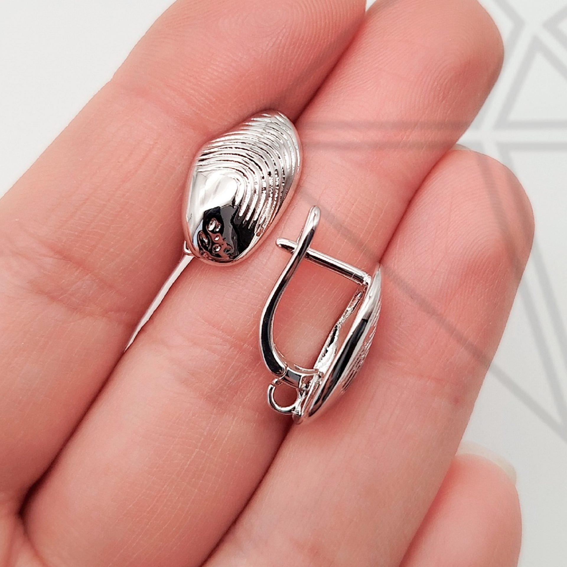 Швензы с английским замком ракушка класса люкс с родированным покрытием (по латуни).