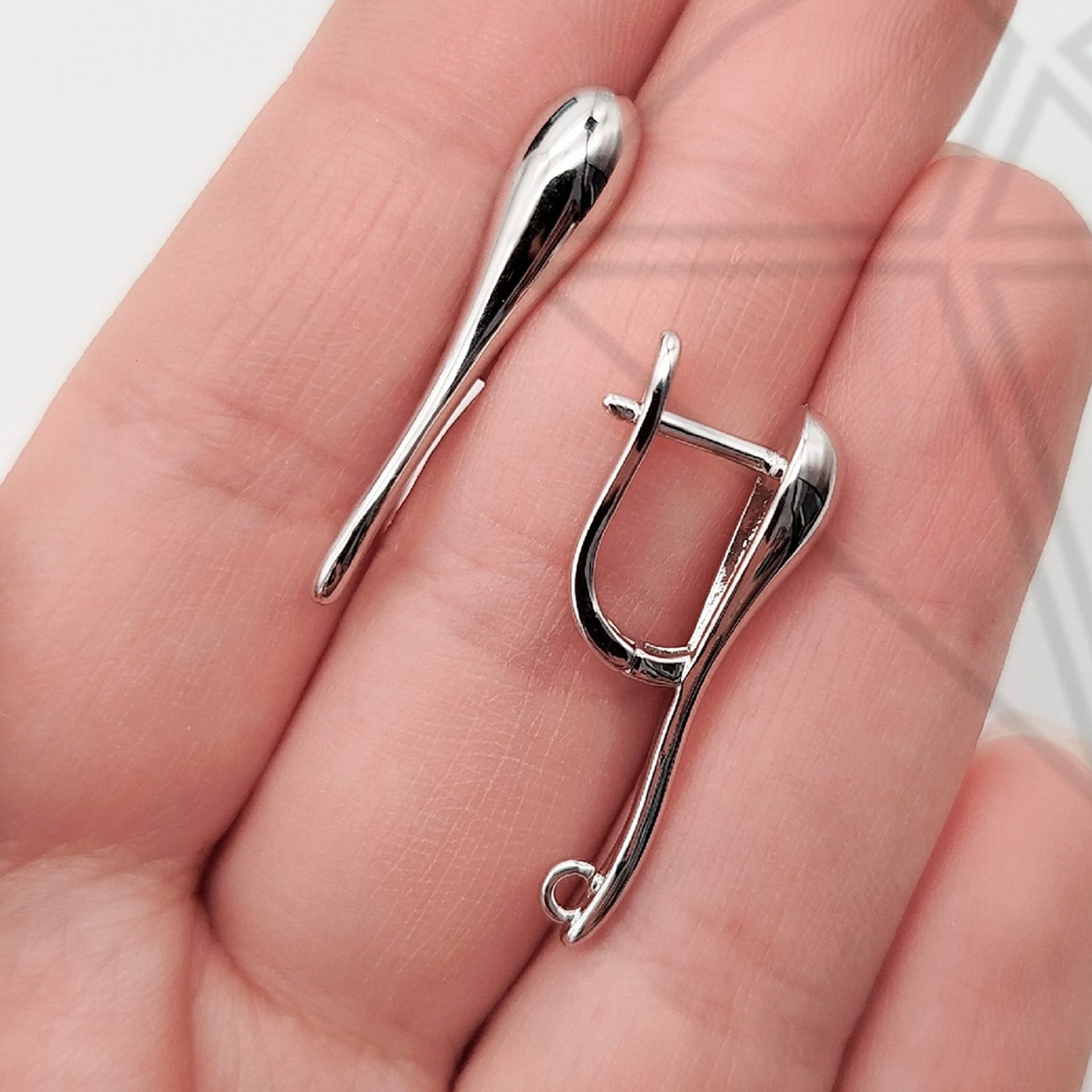 Швензы с английским замком вытянутая капля класса люкс с родированным покрытием (по латуни).