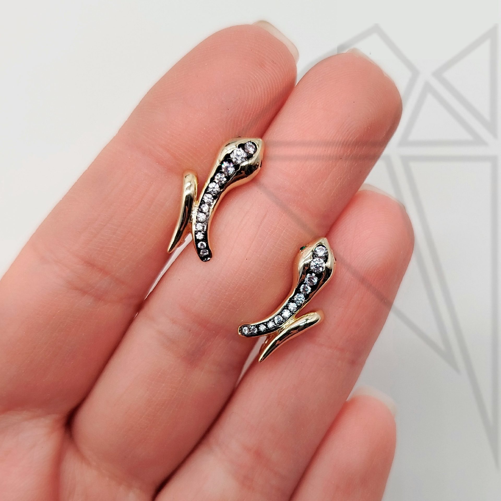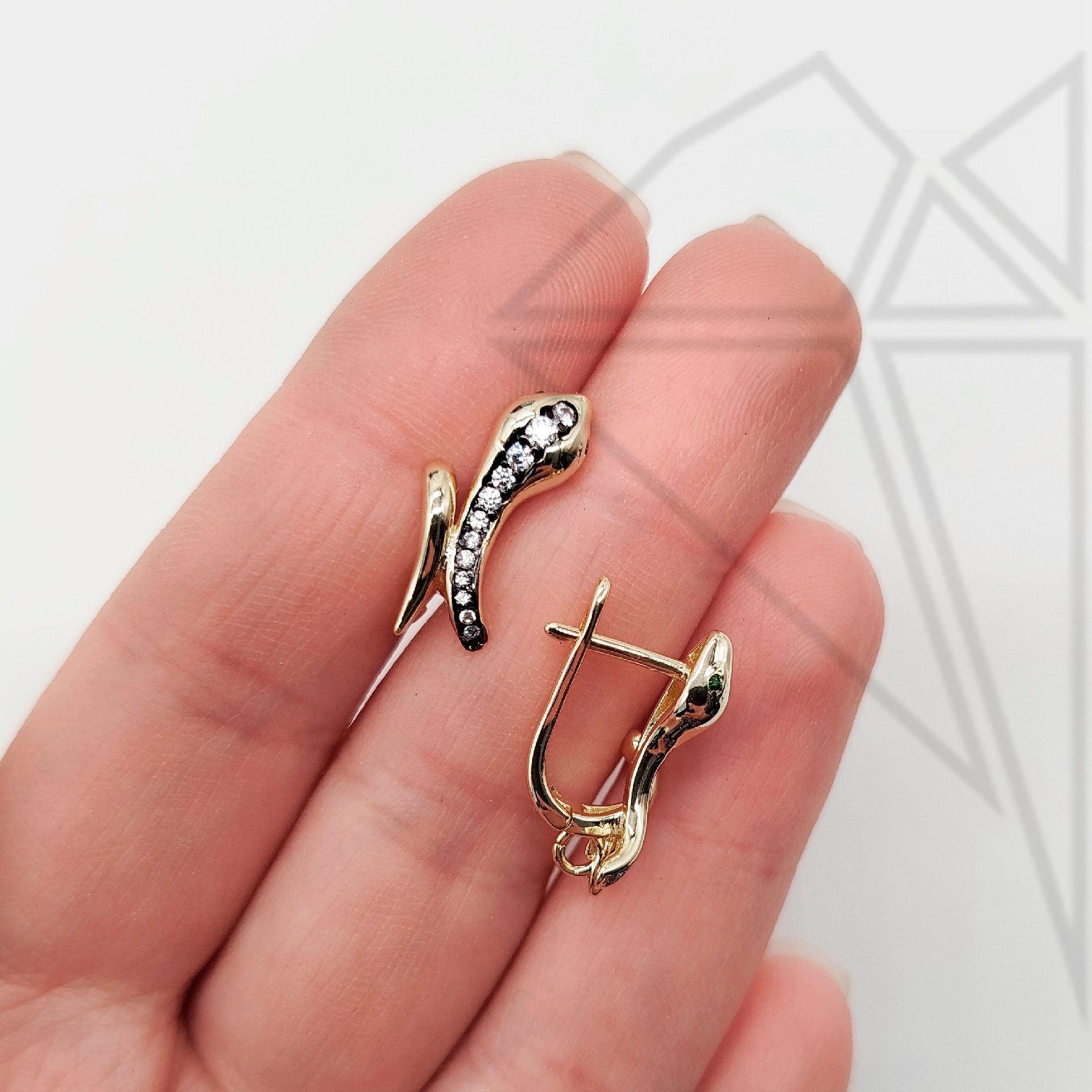 Швензы английский замок змея с фианитами класса люкс с позолоченным покрытием (по латуни).