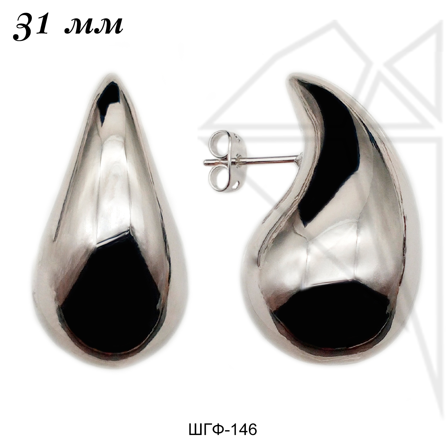 Швензы в форме капли класса люкс с родированным покрытием (по латуни).
