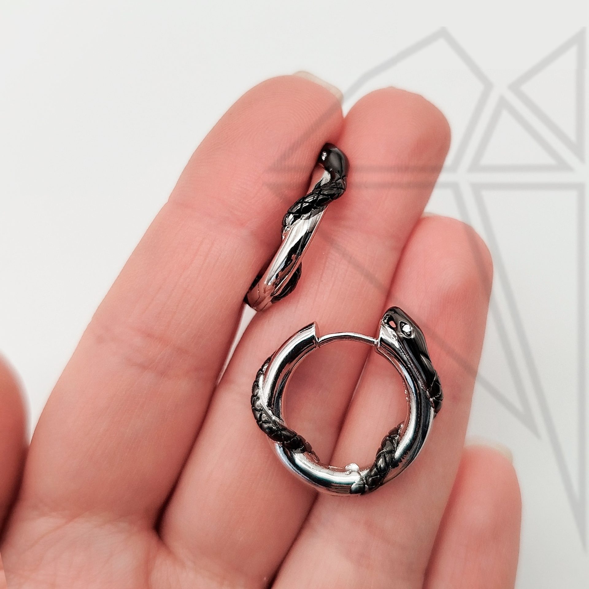Швензы круглые с черной змеей 21 мм с родированным покрытием.