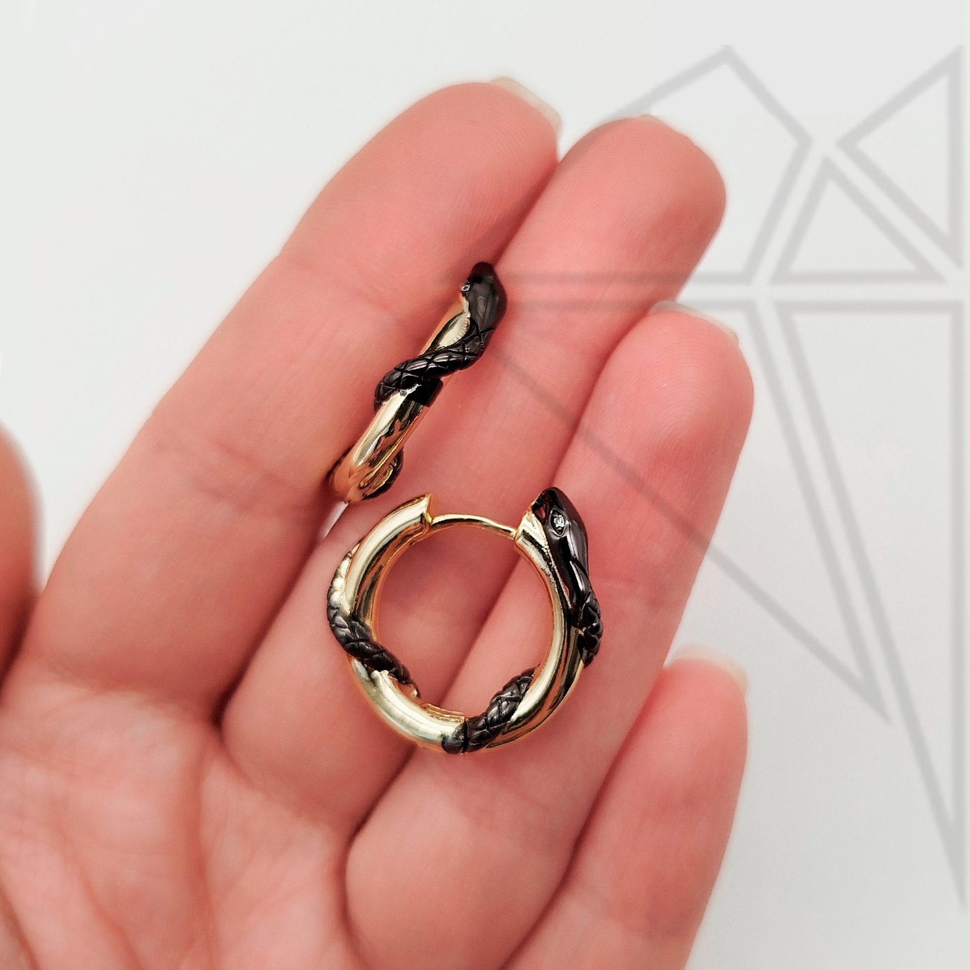 Швензы круглые с черной змеей 21 мм с позолоченным покрытием.