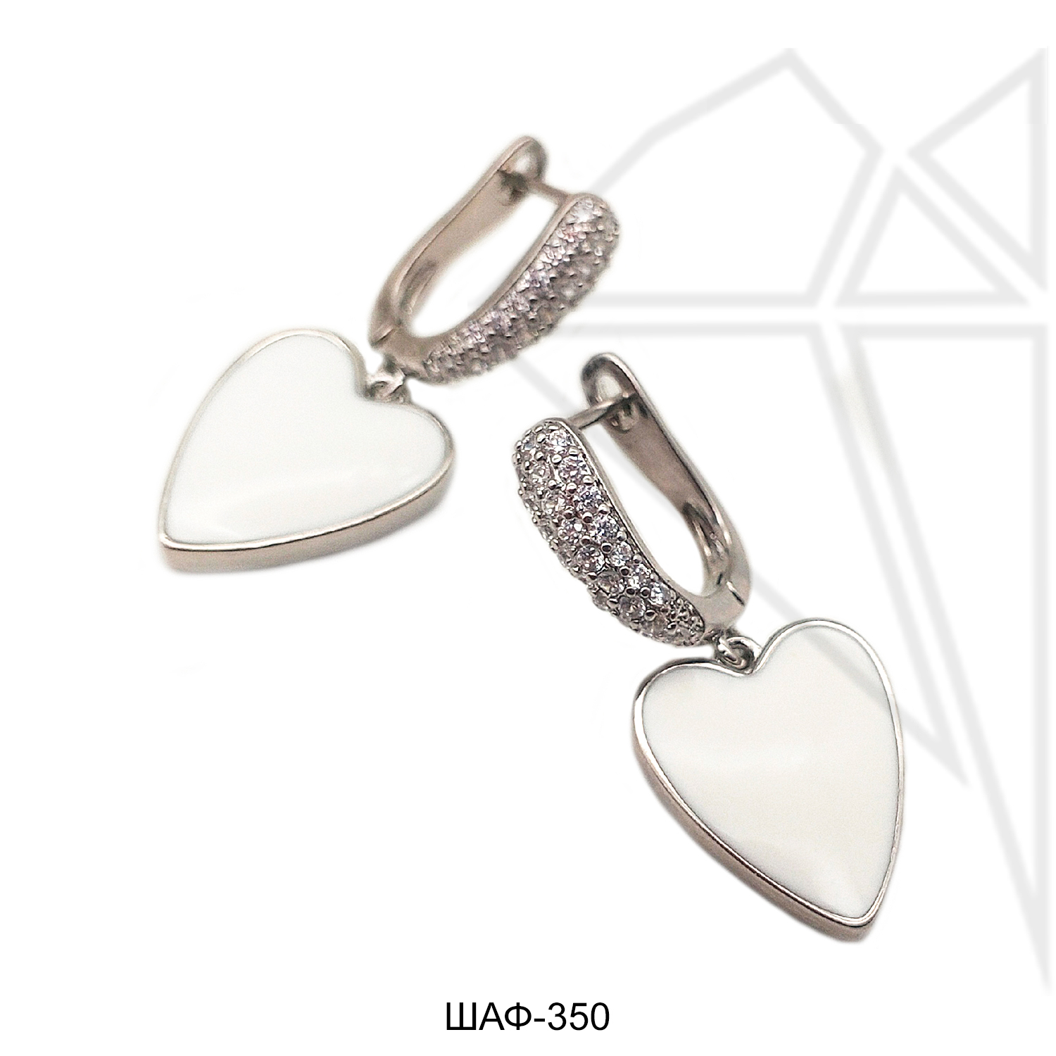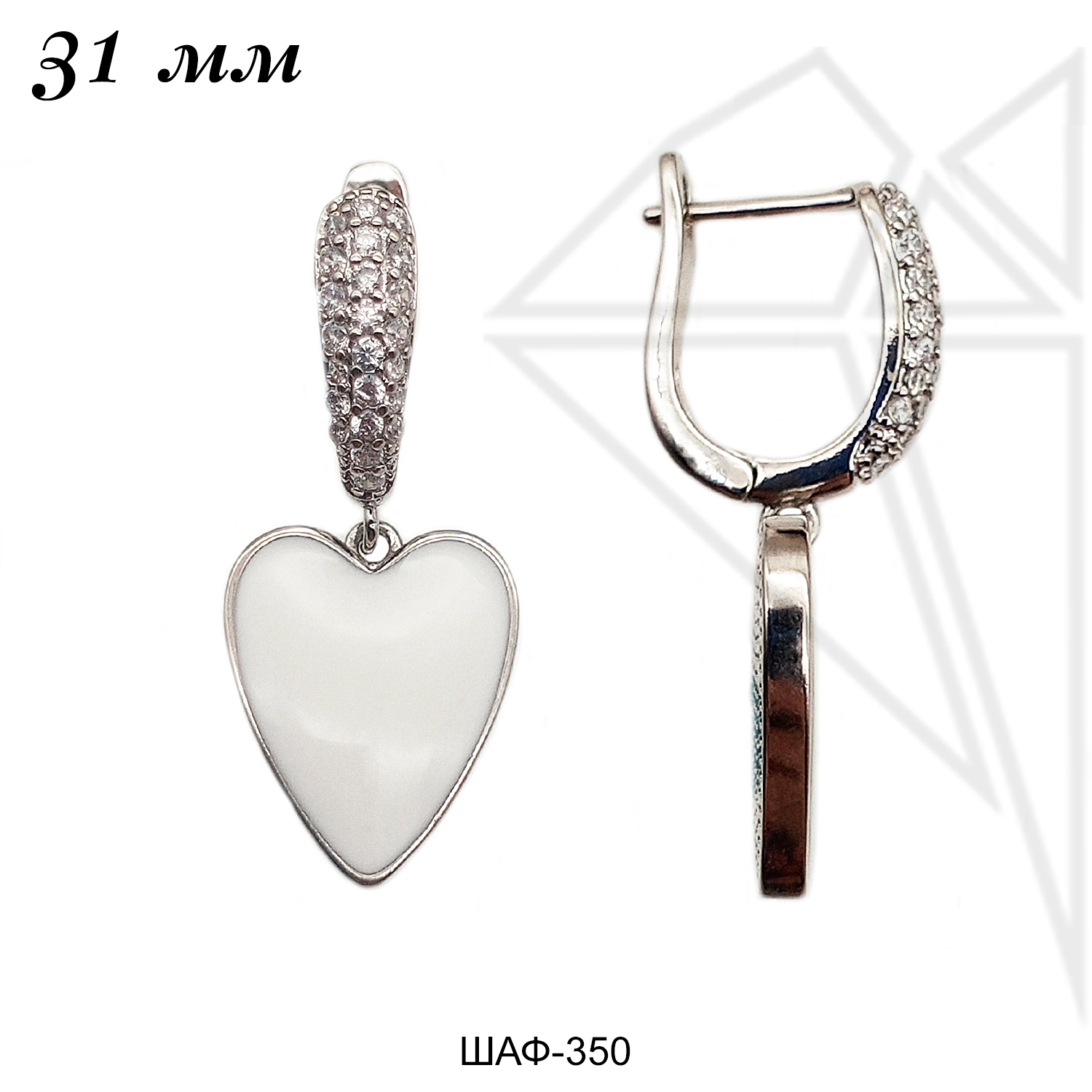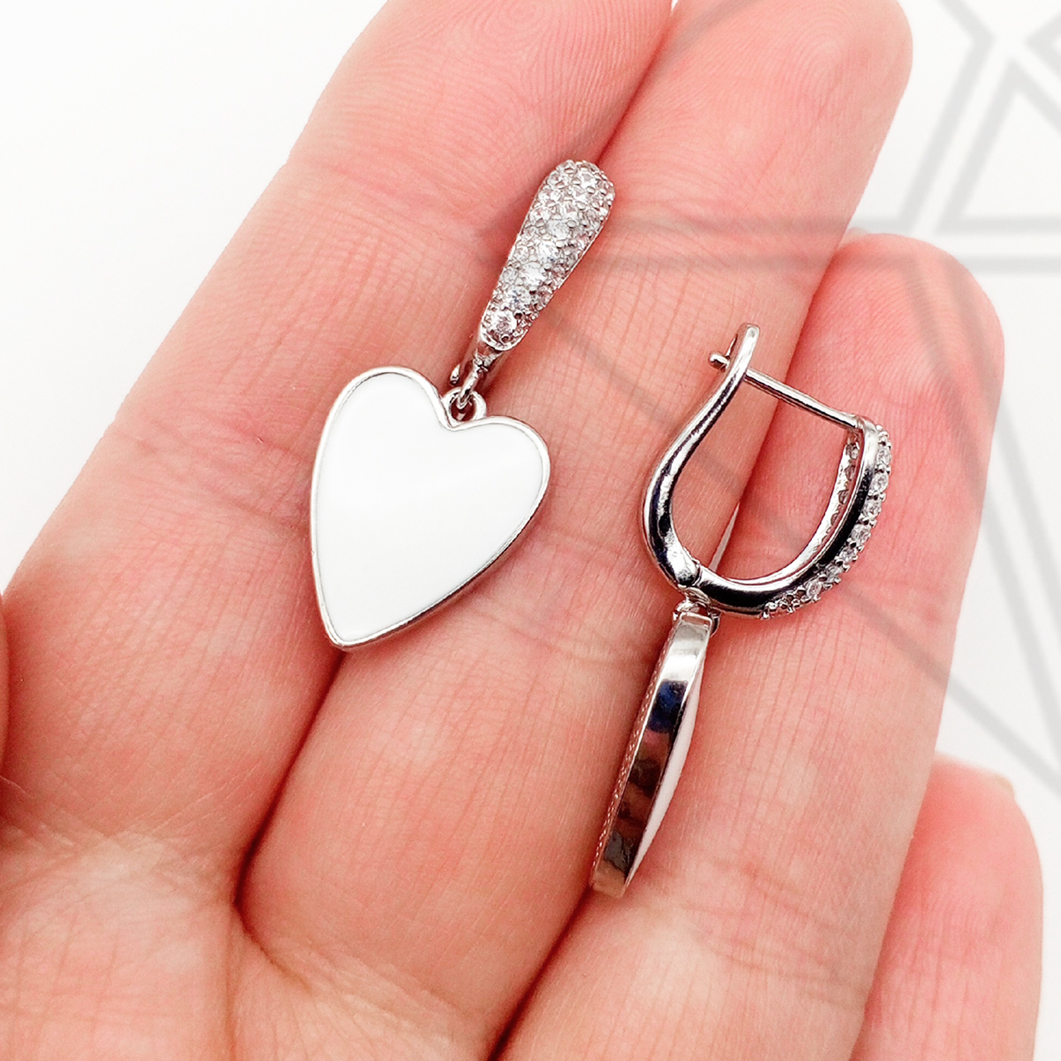 Швензы инкрустированы фианитами. Сердечки покрыты белой эмалью