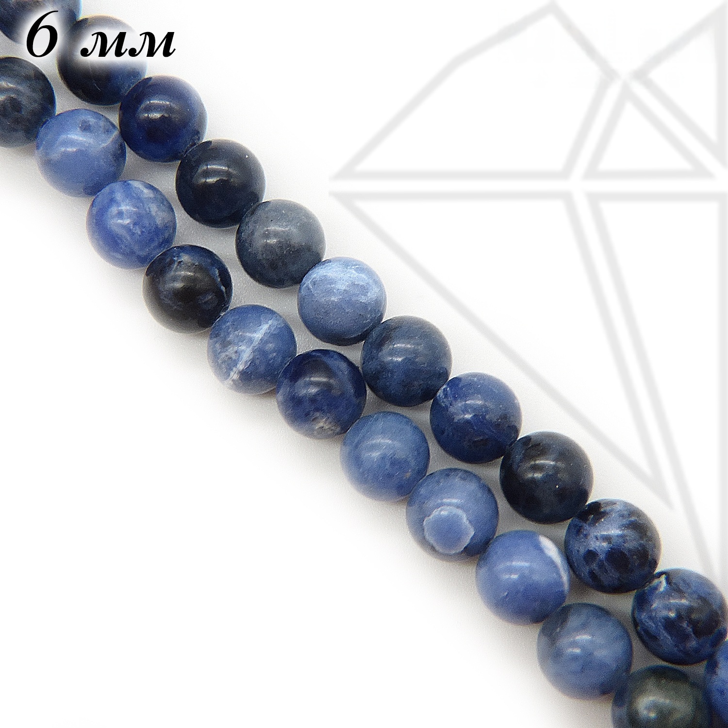 Содалит глянцевый натуральный круглой формы 6 мм