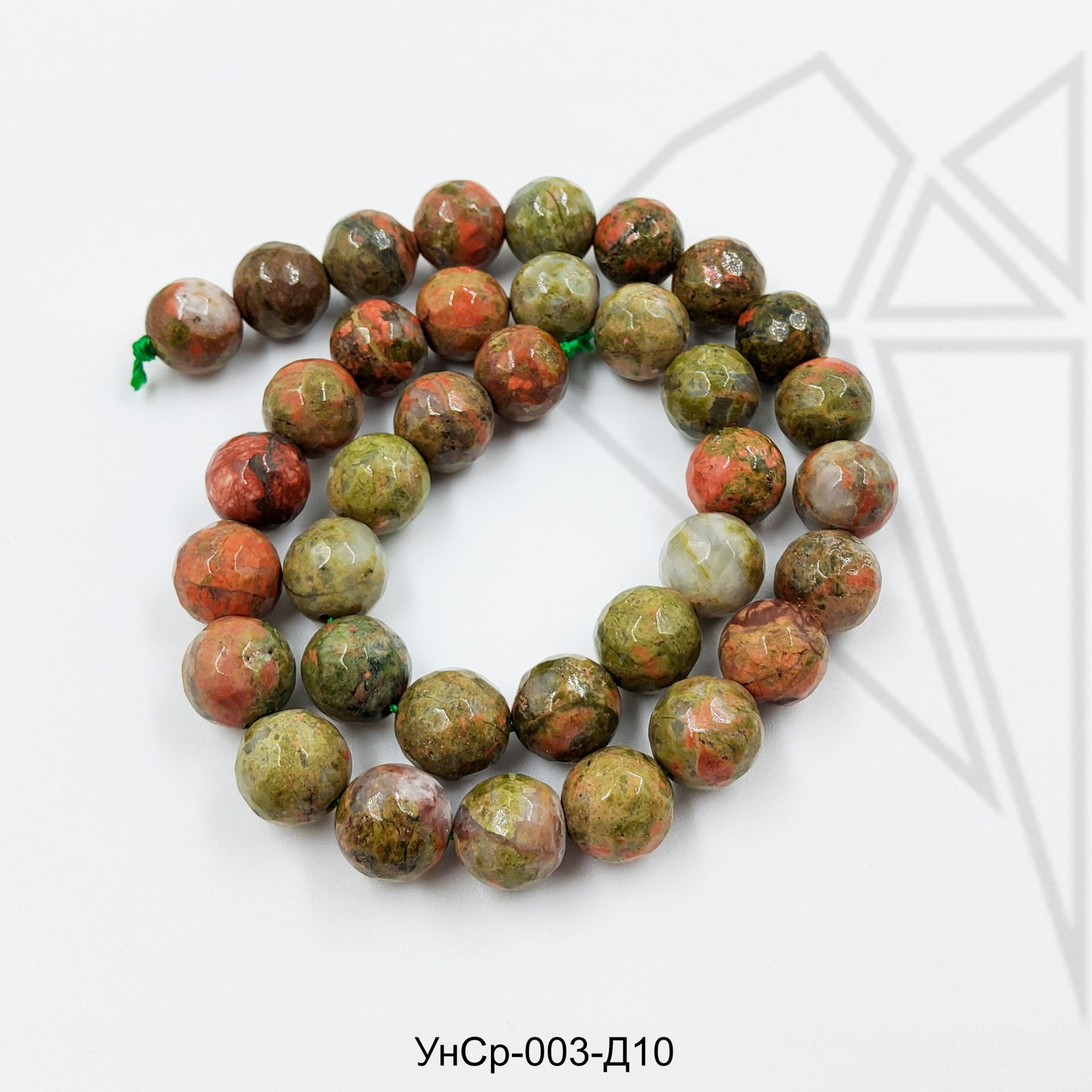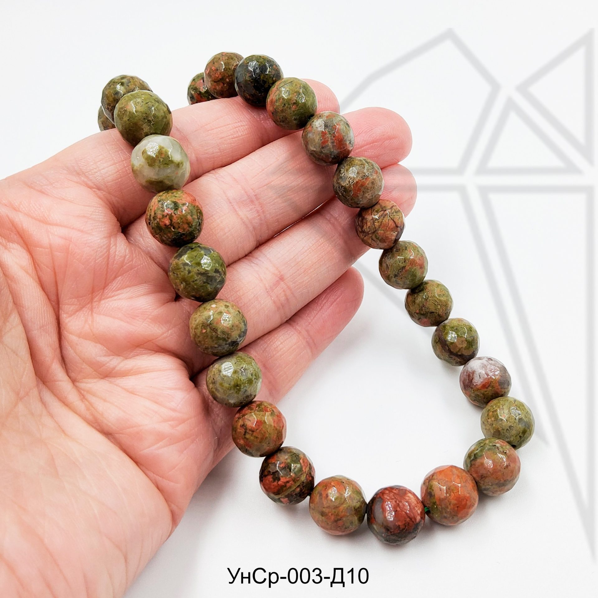 Унакит натуральный круглой формы глянцевый с огранкой 10 мм.