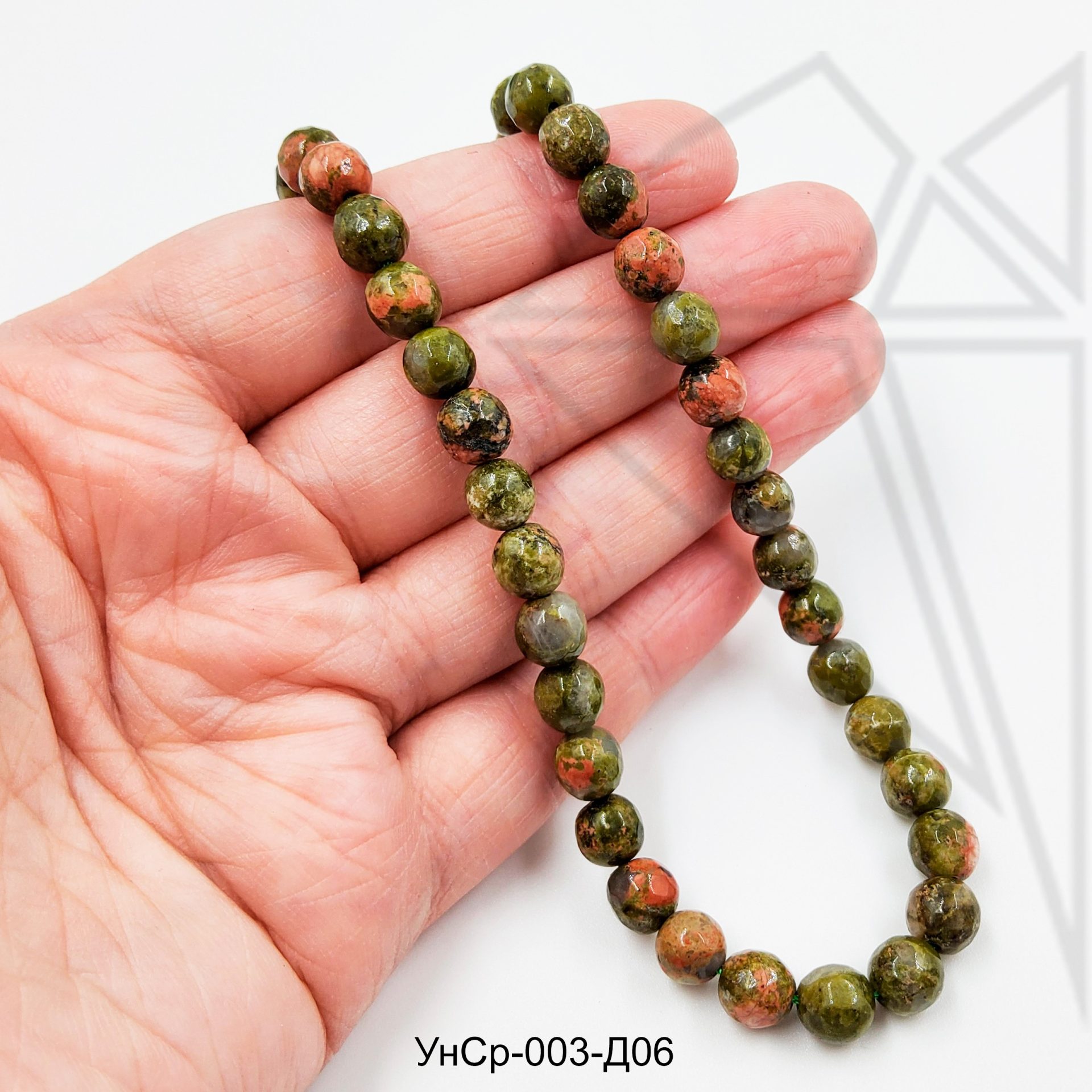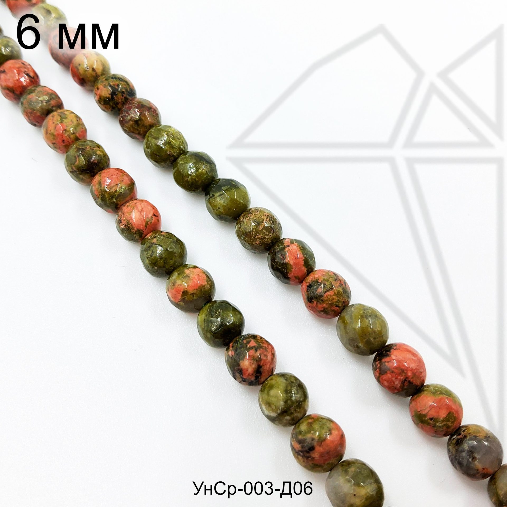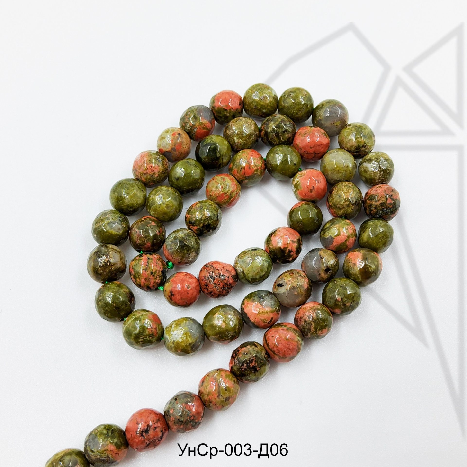 Унакит натуральный круглой формы глянцевый с огранкой 6 мм.