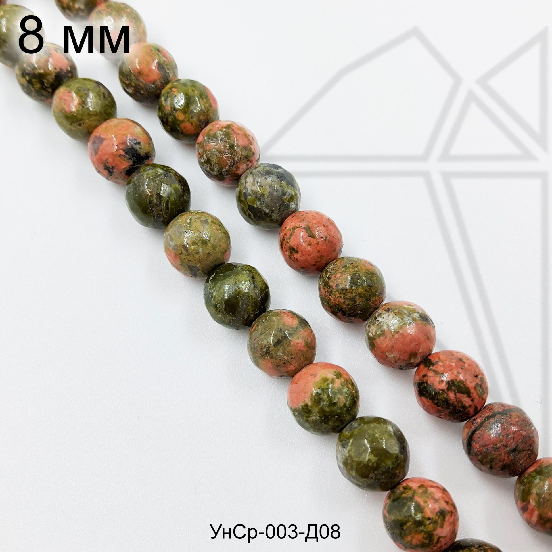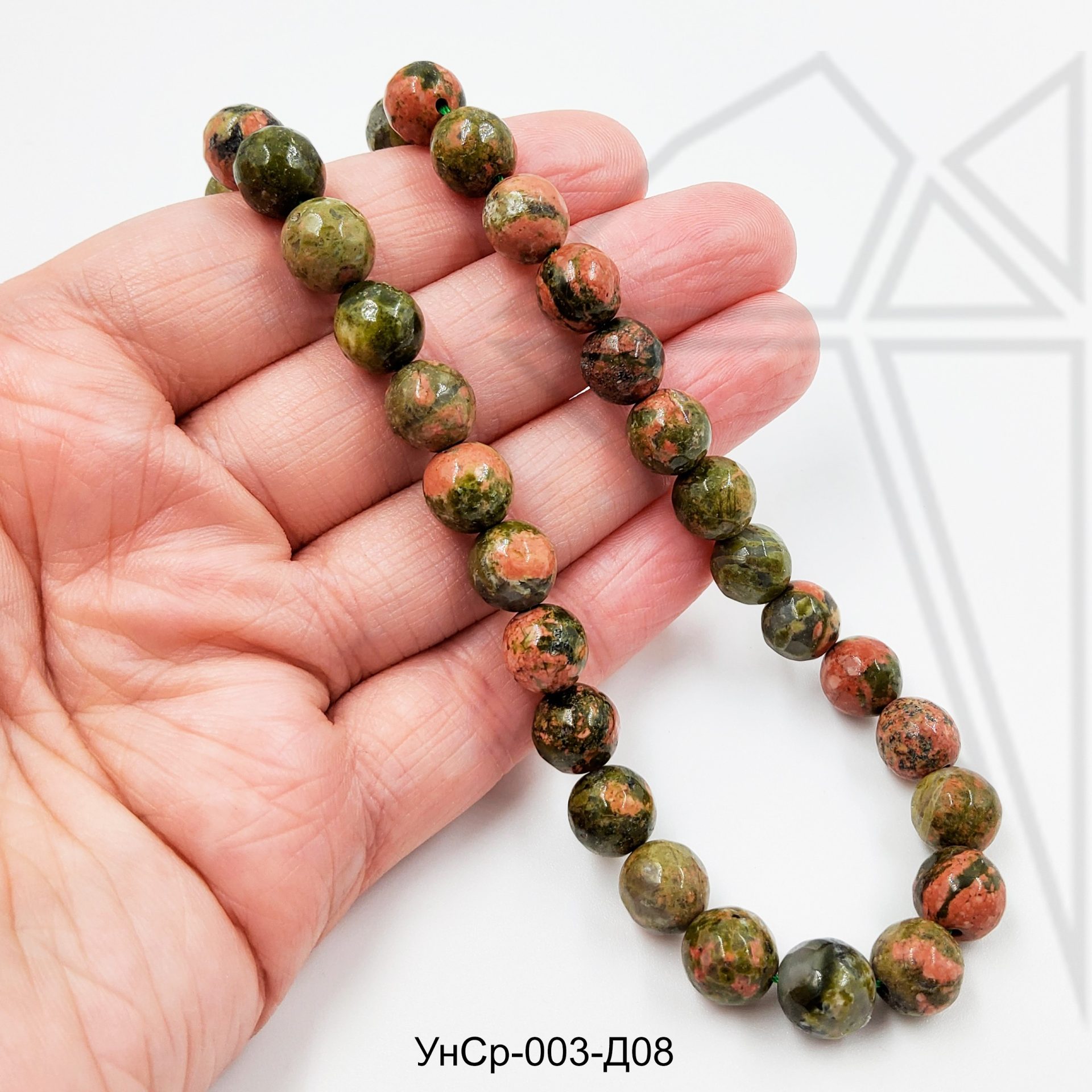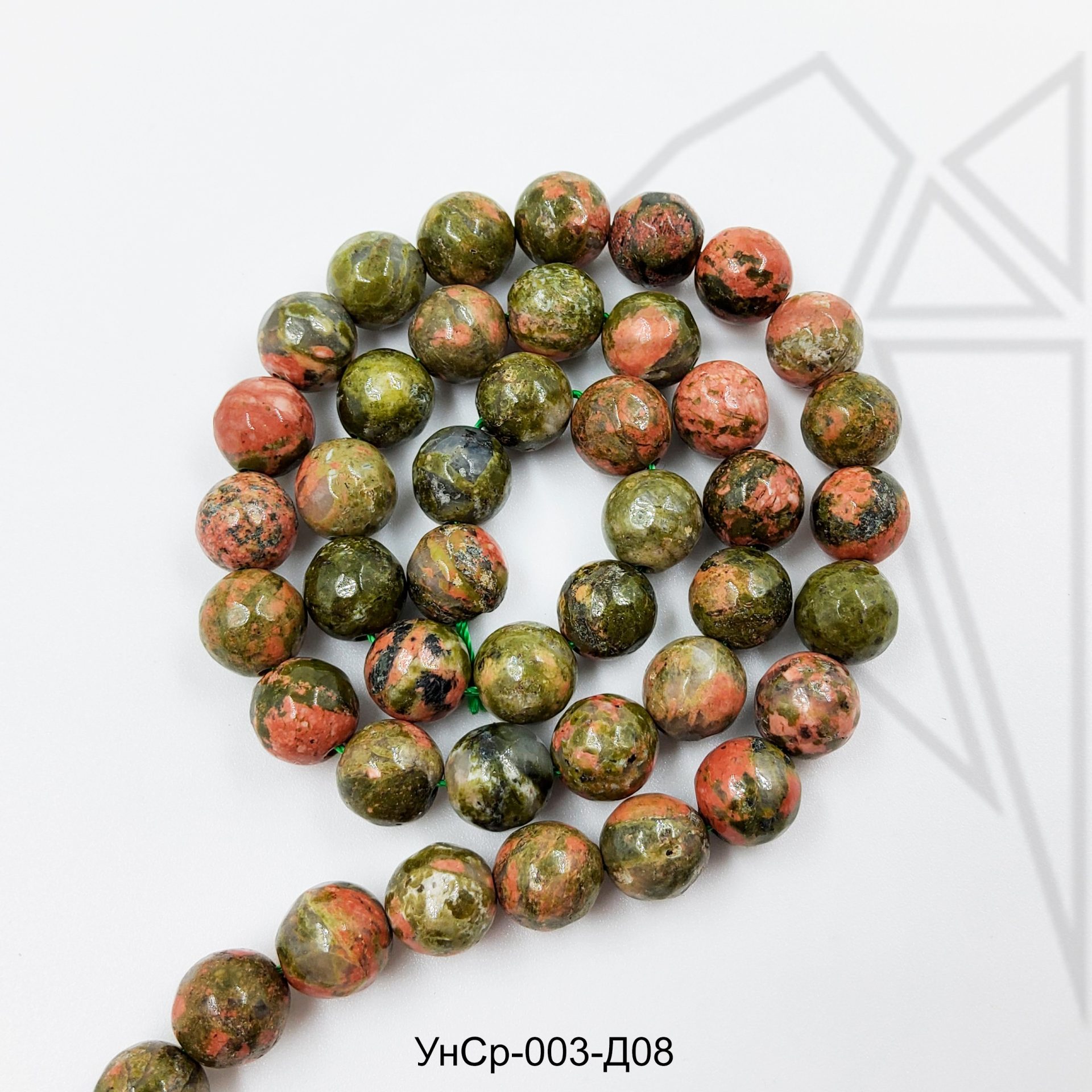 Унакит натуральный круглой формы глянцевый с огранкой 8 мм.