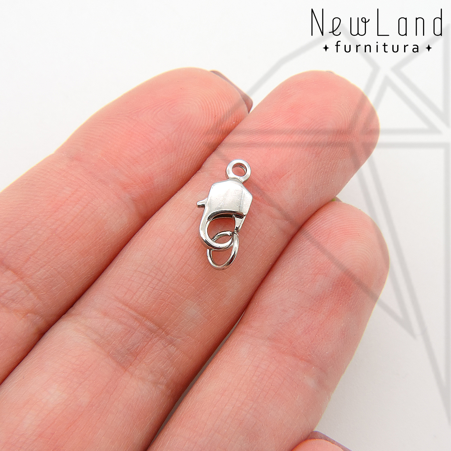Замок карабин (замок-краб, лобстер) класса люкс из латуни с радированным покрытием, не темнеет, не облезает. Замок карабин самый распространенный вид замков при работе с ювелирными украшениями я бижутерией. Замок карабин очень крепкий и надежный замок, который сможет держать крупное изделие.