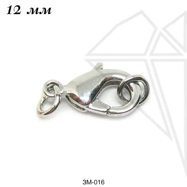 Замок карабин самый распространенный вид замков при работе с ювелирными украшениями и бижутерией. Замок карабин очень крепкий и надежный замок, который сможет держать крупное изделие.
