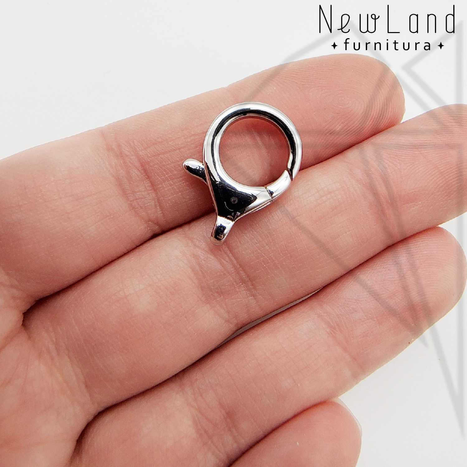 Замок — карабин 20 мм класса люкс с родированным покрытием (по латуни).