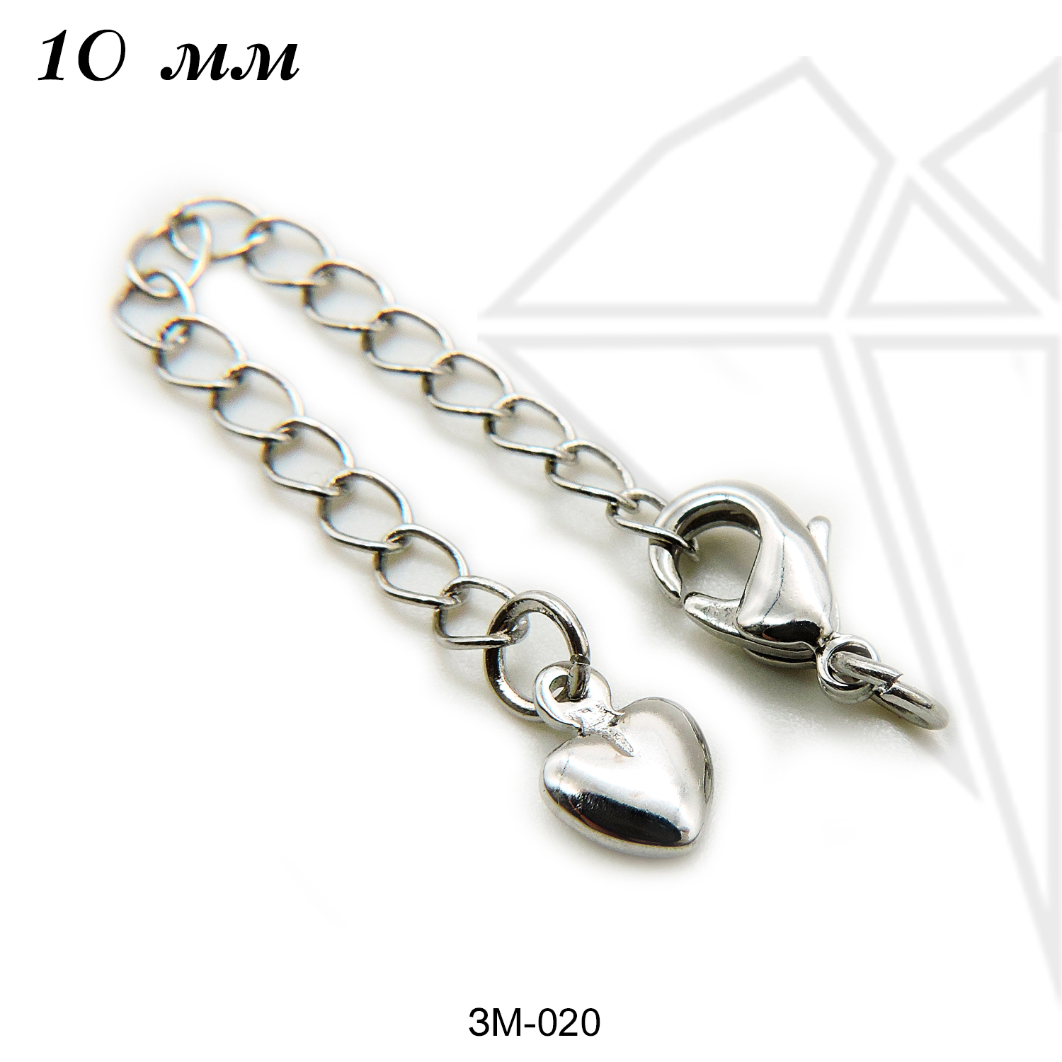 Замок карабин с удлинительной цепочкой (замок-краб, лобстер) класса люкс из латуни с радированным покрытием, не темнеет, не облезает.
