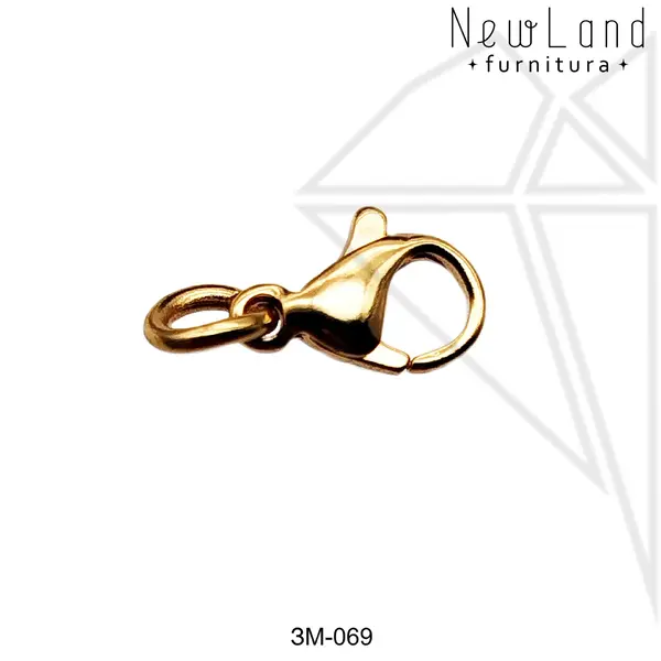 Замок — карабин 10 мм стальной золотого цвета.