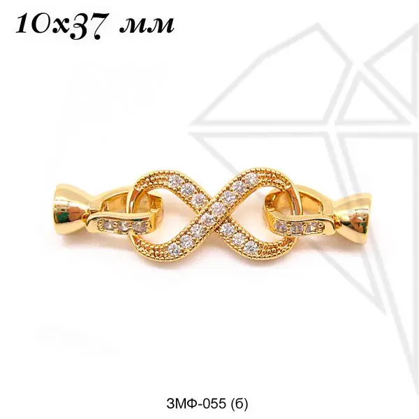 Замок с застежкой двойной класса люкс из латуни с радированным покрытием, не темнеет, не облезает. Основной элемент застежки накладывается на ответную часть застежки, складывается как книжка и защелкивается за специальный выступ. В качестве ответной части может выступать соединительное колечко или такой же замочек.
