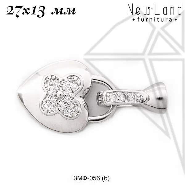 Замок складной с фианитами 27х13 мм класса люкс с родированным покрытием (по латуни).