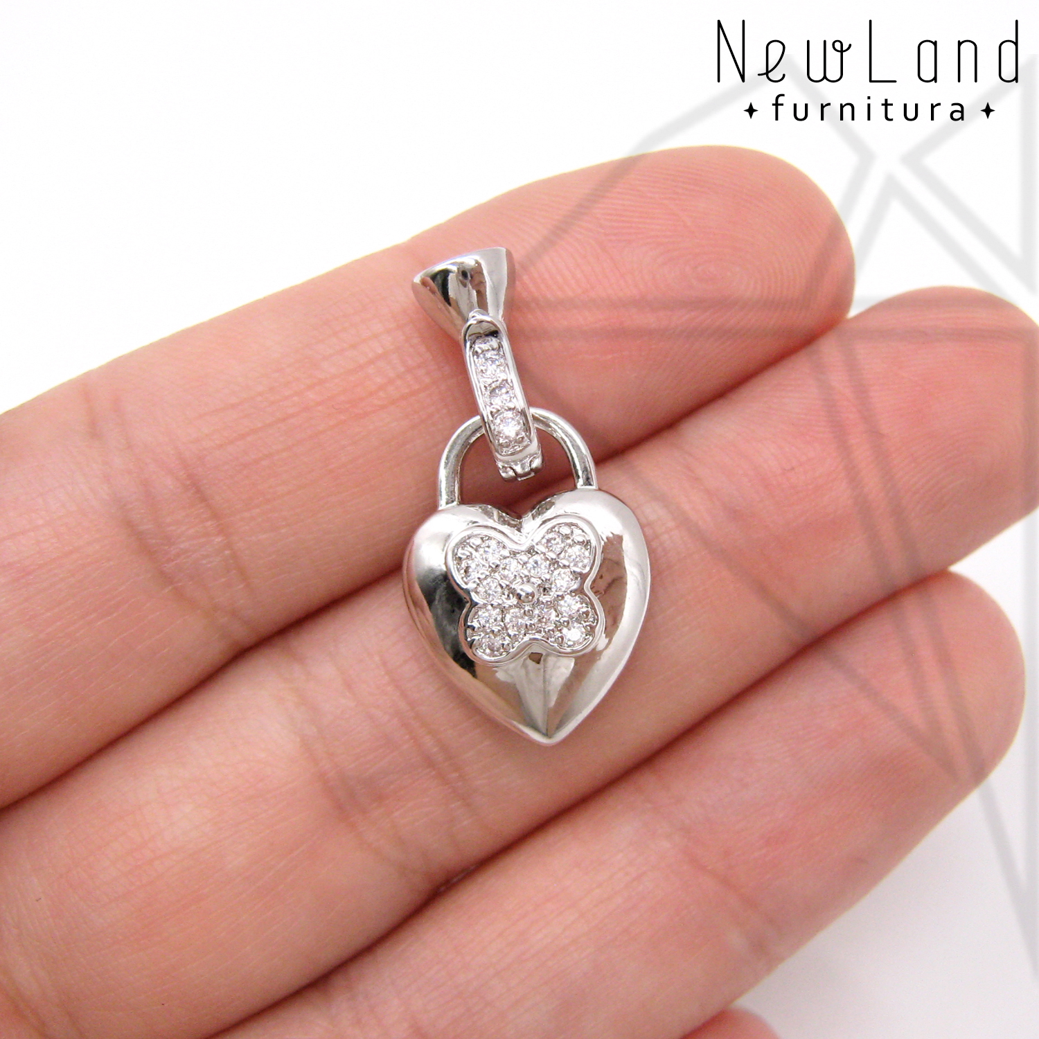 Замок складной с фианитами 27х13 мм класса люкс с родированным покрытием (по латуни).
