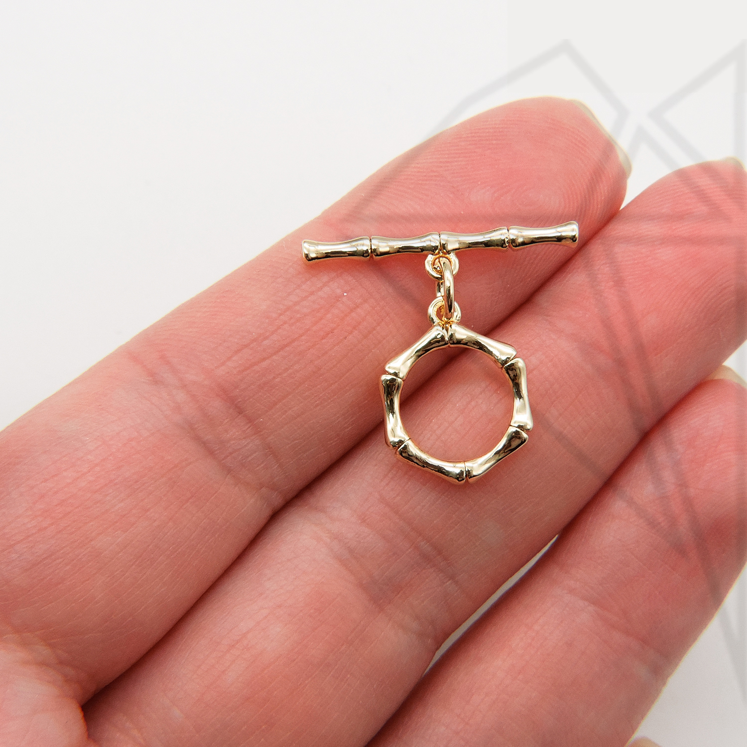 Одним из самых простых замочков для создания украшений является тогл. Известный ещё с античных времён, он актуален и сегодня, поскольку, несмотря на свою простоту, он надёжно держит браслет на руке или колье на шее.