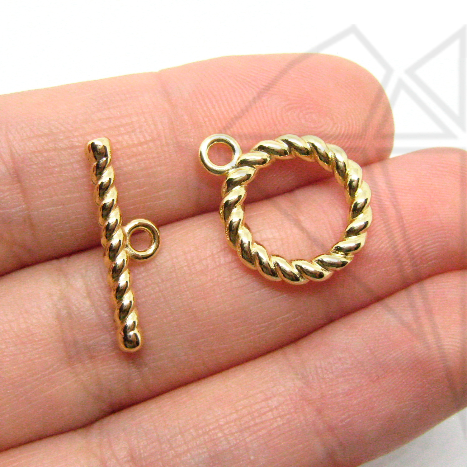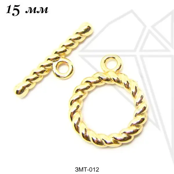 Одним из самых простых замочков для создания украшений является тогл. Известный ещё с античных времён, он актуален и сегодня, поскольку, несмотря на свою простоту, он надёжно держит браслет на руке или колье на шее.