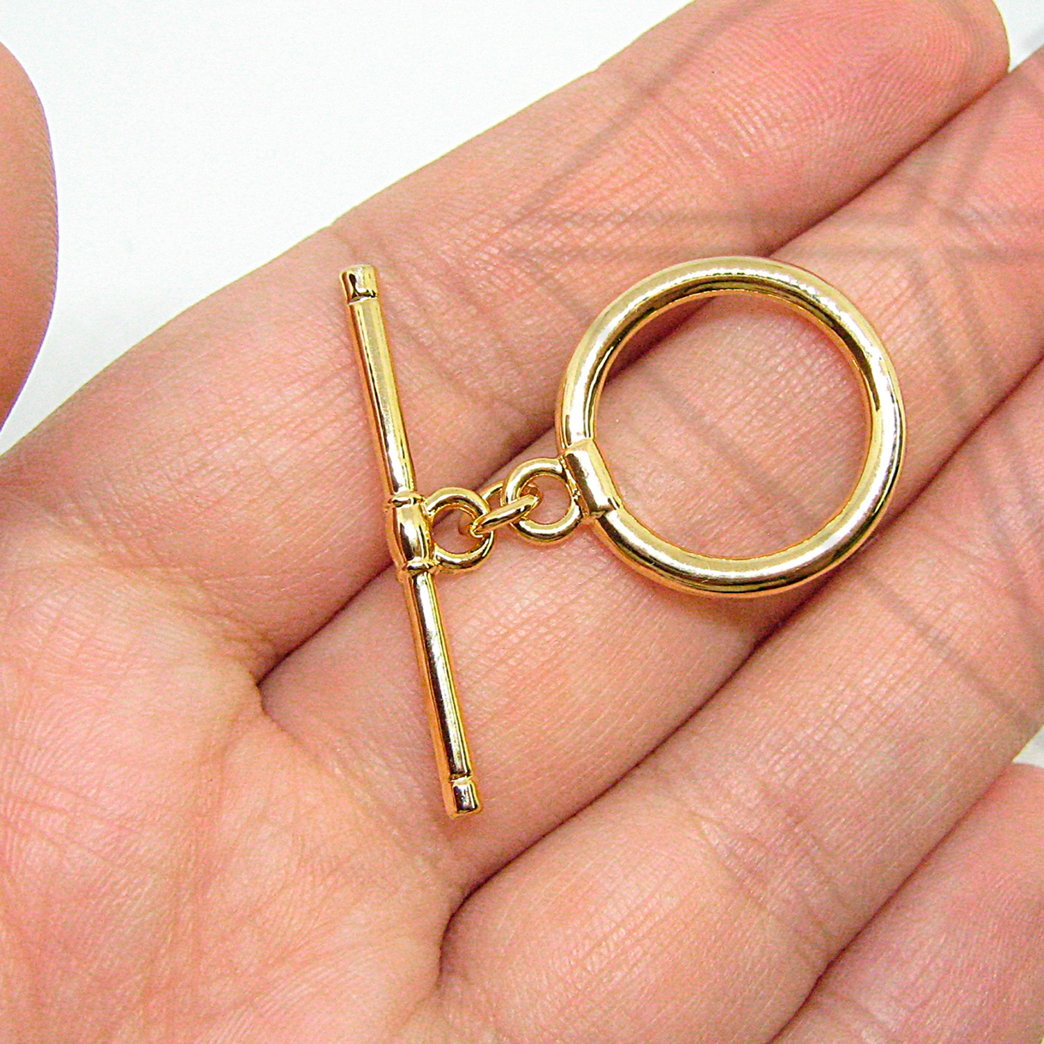 Одним из самых простых замочков для создания украшений является тогл. Известный ещё с античных времён, он актуален и сегодня, поскольку, несмотря на свою простоту, он надёжно держит браслет на руке или колье на шее.