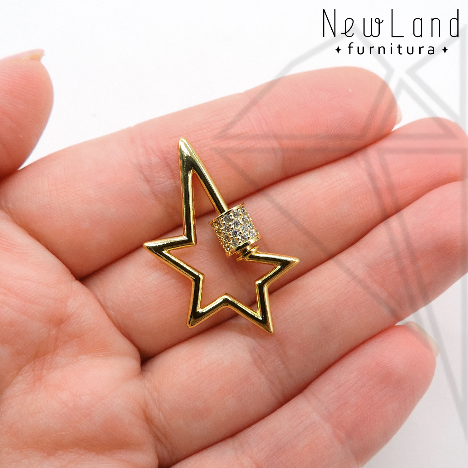 Замок закручивающийся класса люкс из латуни с радированным покрытием, не темнеет, не облезает. Закручивающиеся застежки обычно используют для украшений на шею. Изначально они рассчитаны для однорядных украшений, но с переходниками могут использоваться и для многорядных. Такие застежки довольно надежны, подходят для тяжелых украшений. Не могут использоваться для украшений с регулируемой длиной.