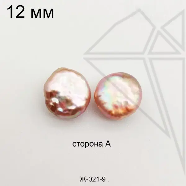 Жемчуг круглой формы лавандово-персикового цвета с хорошим перламутровым покрытием.