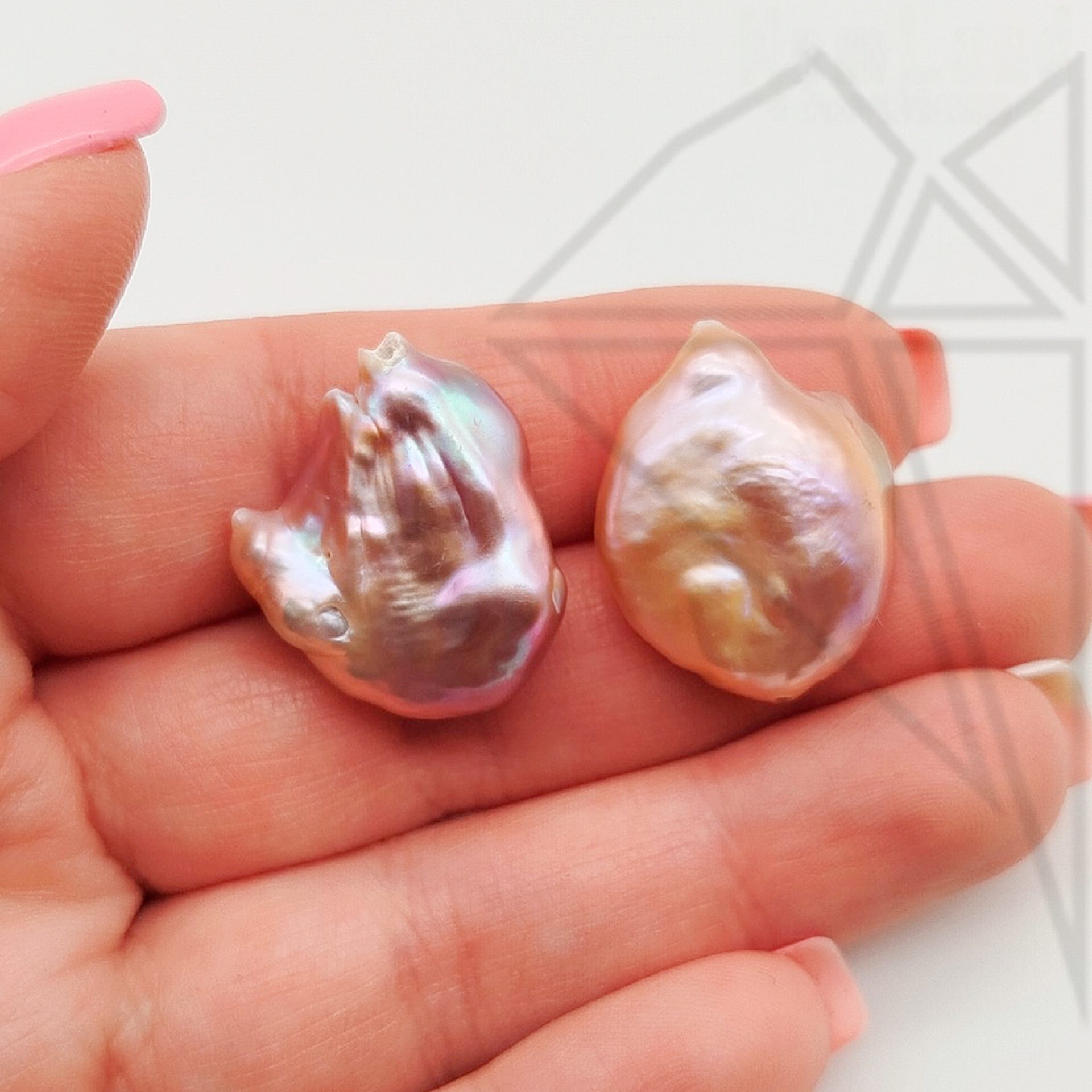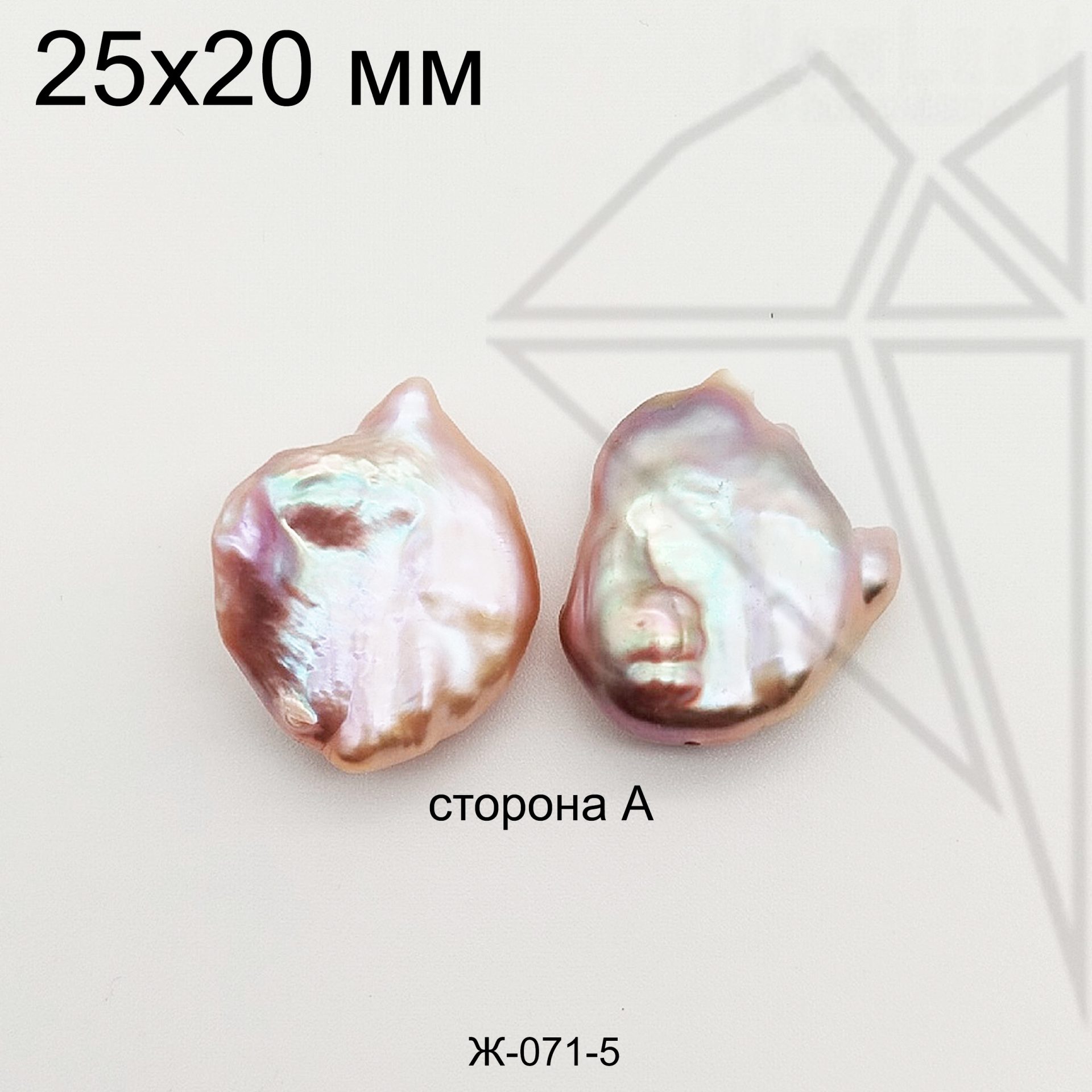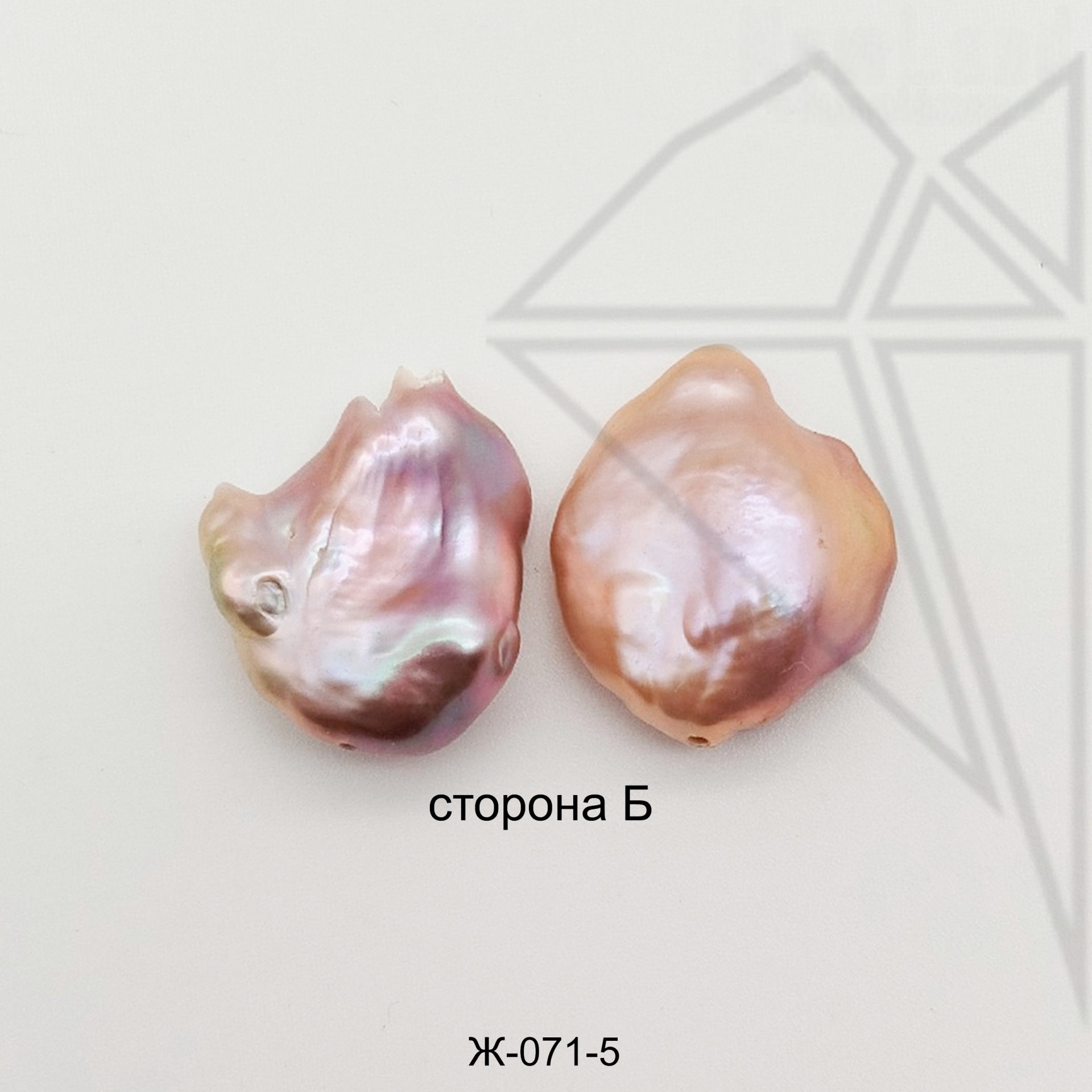 Жемчуг в форме капли лавандово-персикового цвета с хорошим перламутровым покрытием.