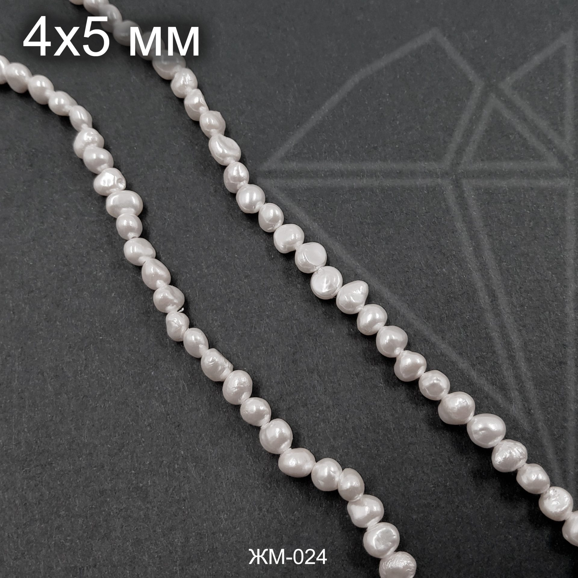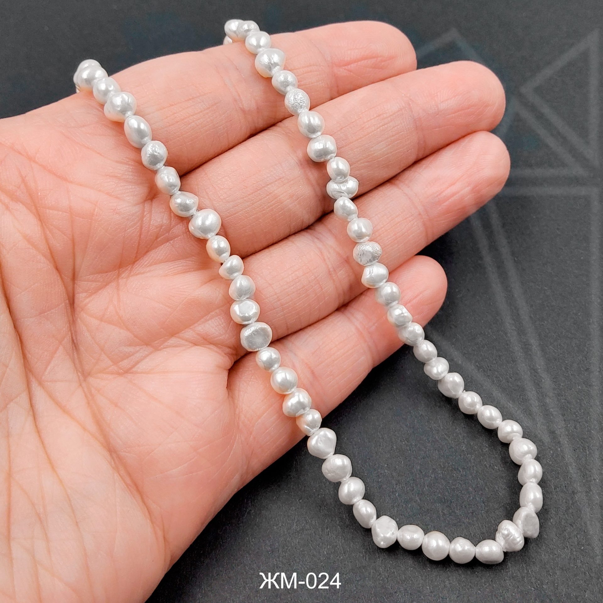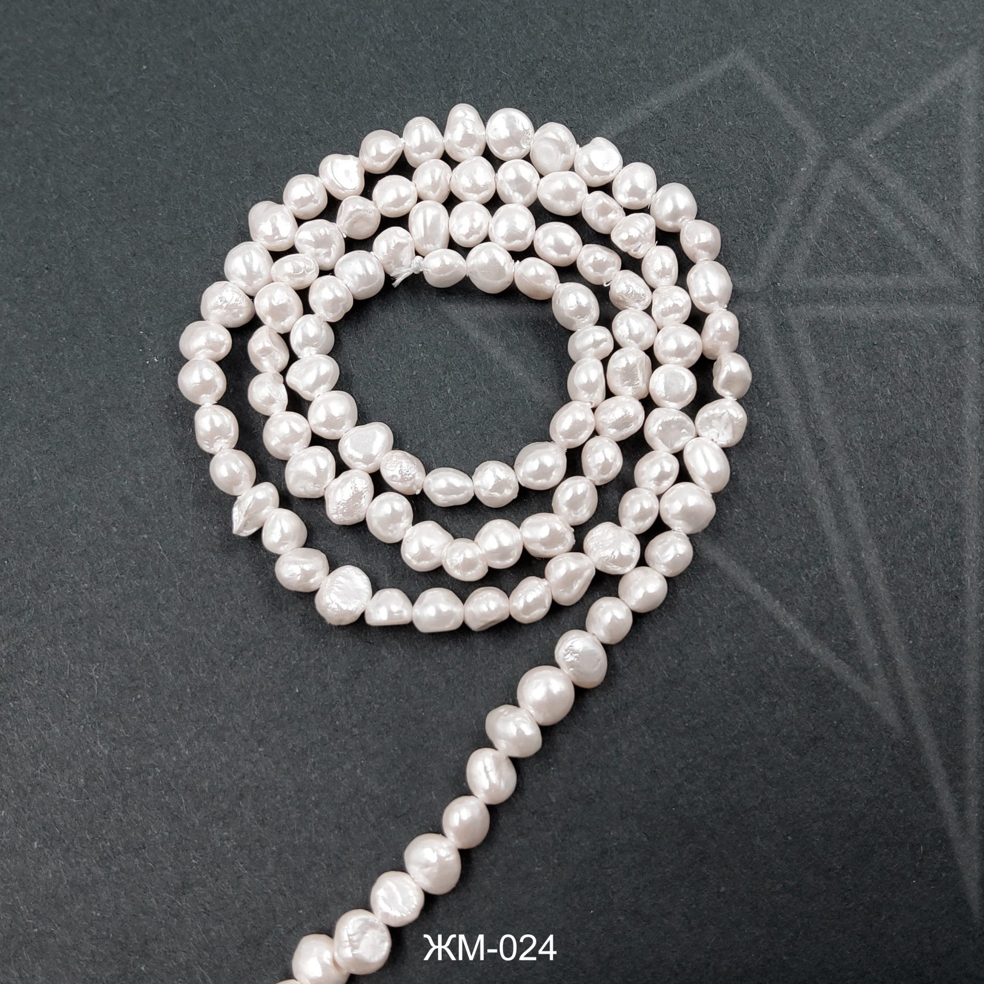 Жемчуг майорка округлой формы белого цвета.