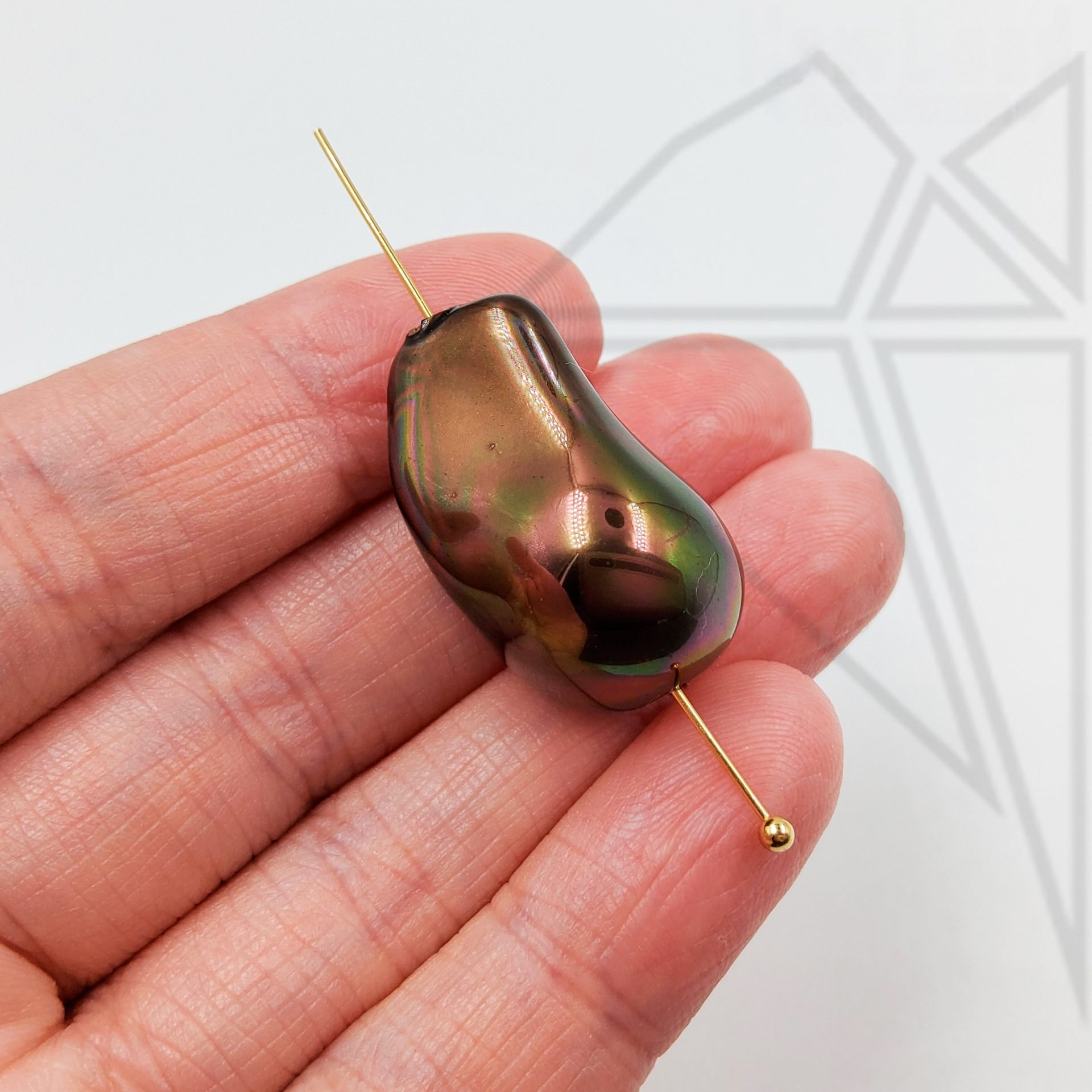 Жемчуг майорка в форме капли коричневого цвета с перламутровым покрытием.