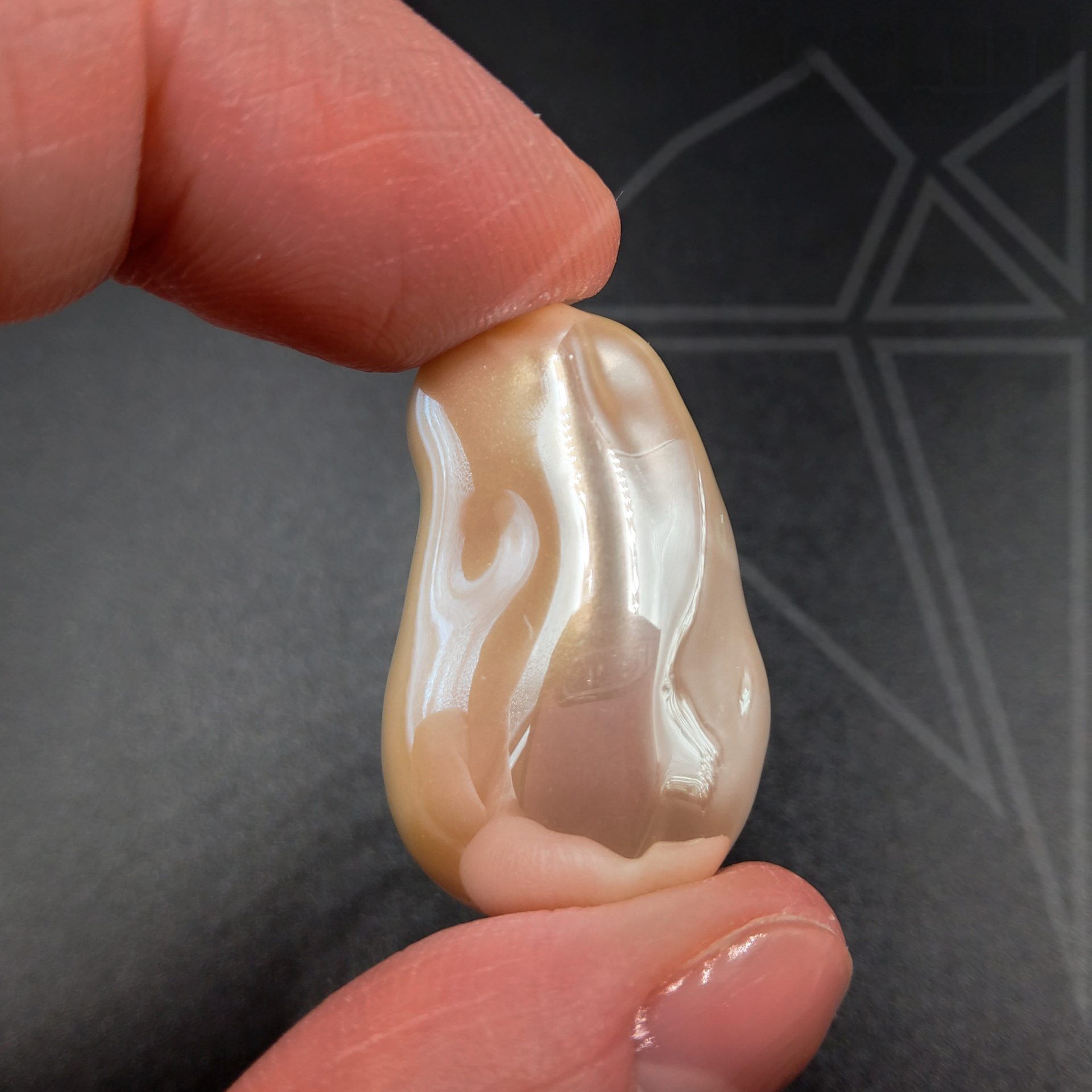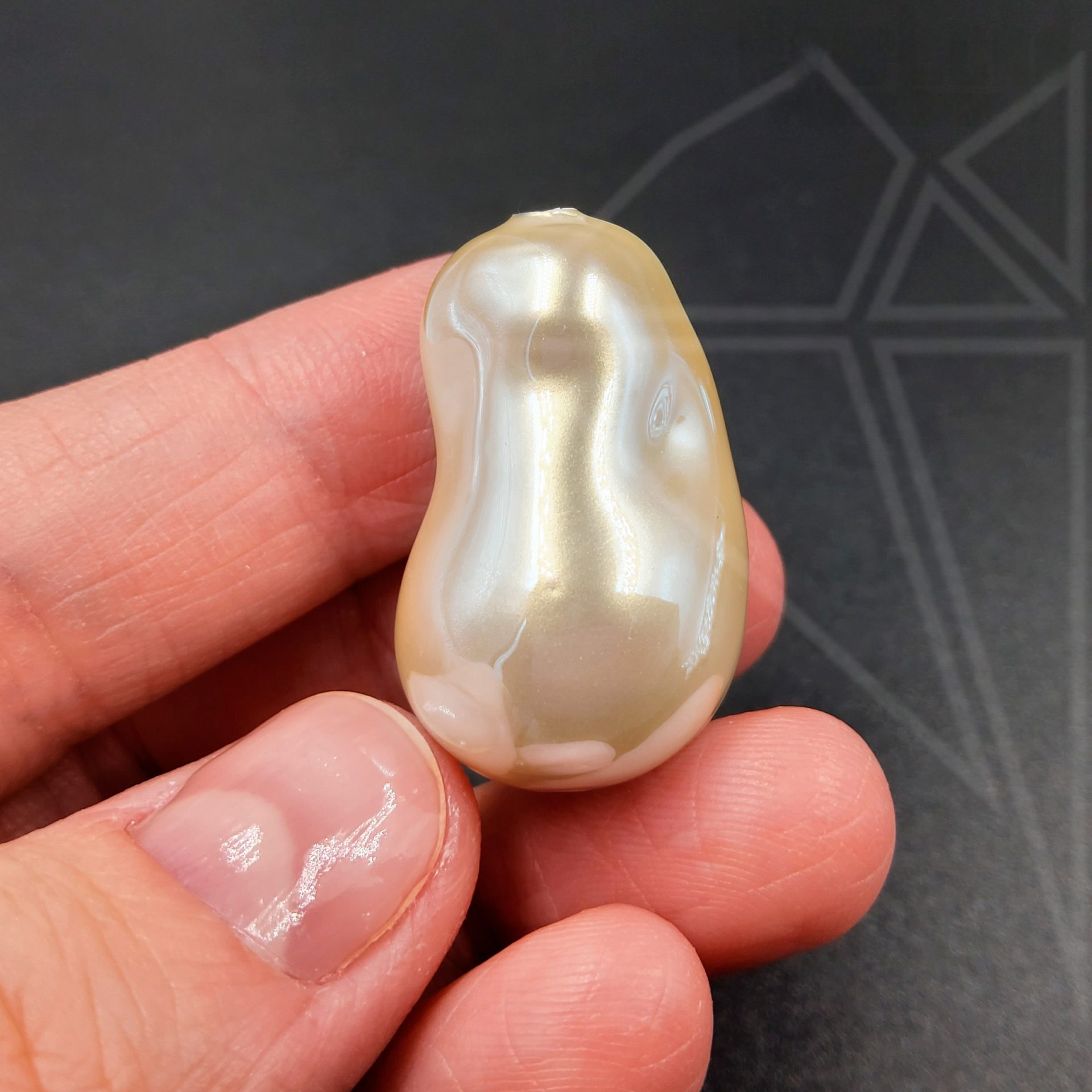 Жемчуг майорка в форме капли бежевого-белого цвета с перламутровым покрытием.