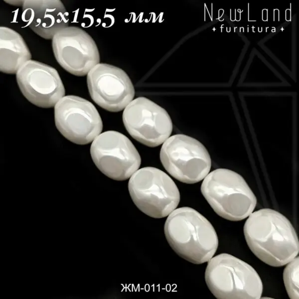 Жемчуг майорка овальной формы белого цвета 19,5х15,5 мм с красивыми перламутровыми переливами.