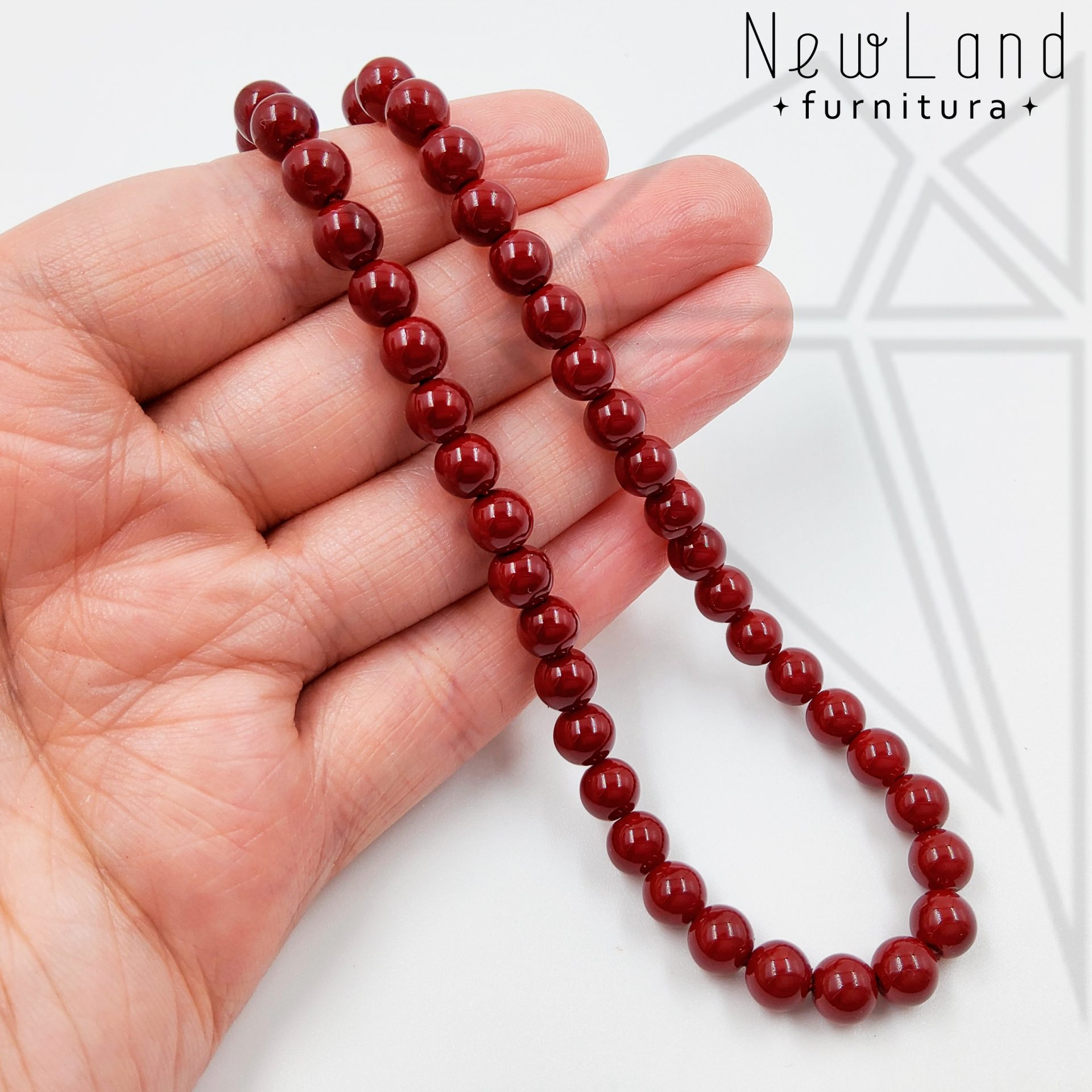 Жемчуг майорка круглой формы бордового цвета 6 мм.