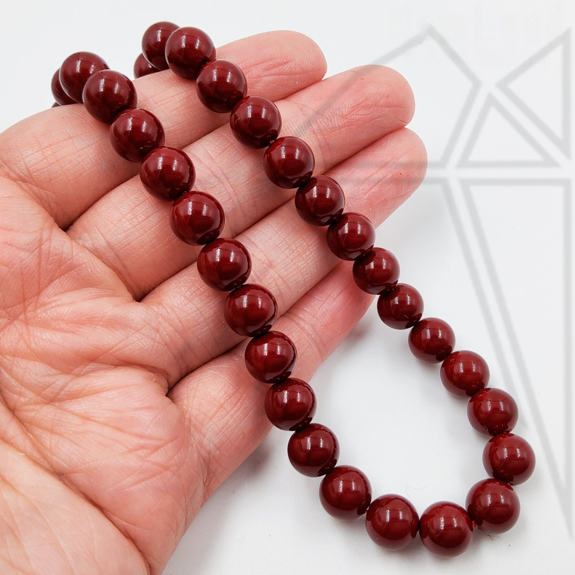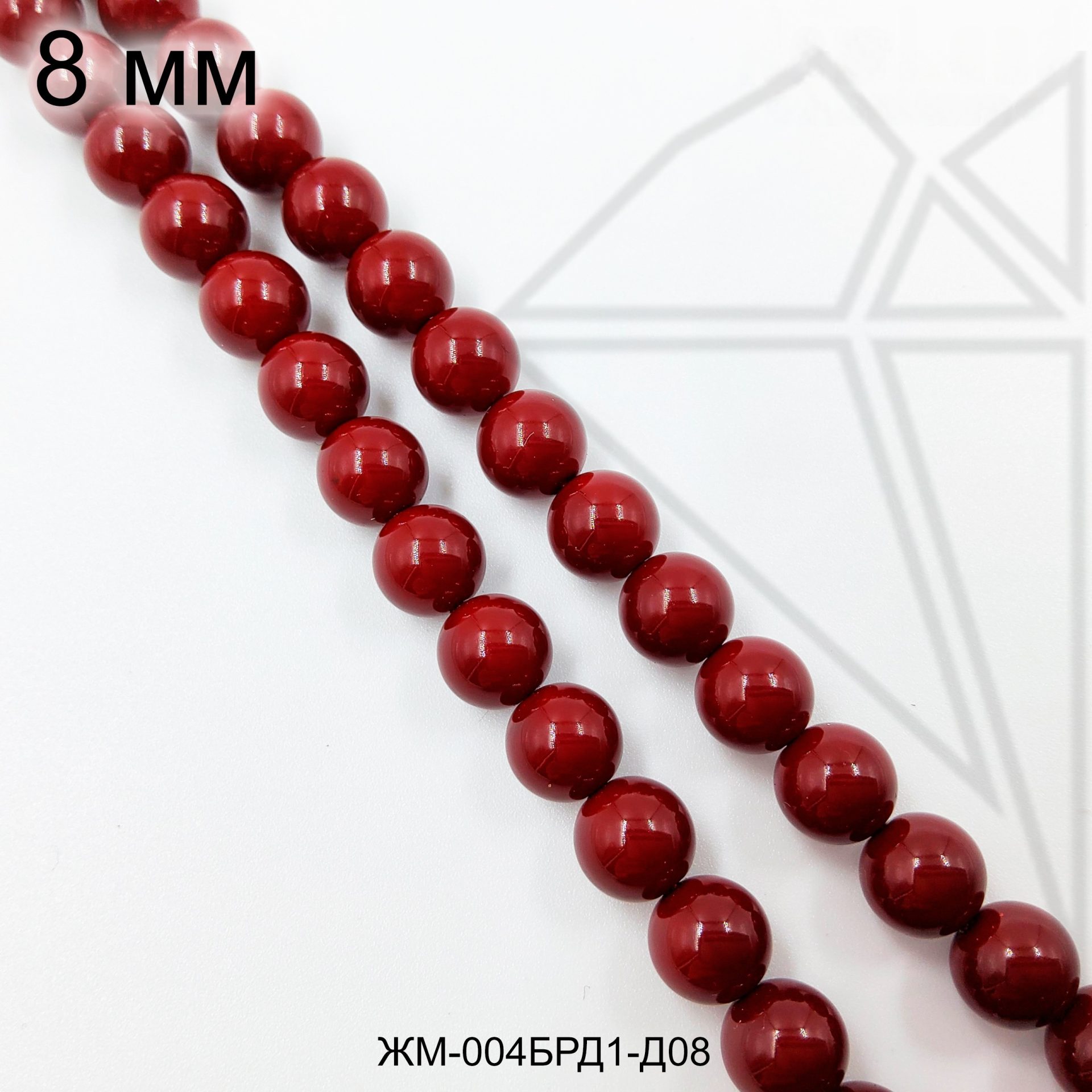 Жемчуг майорка круглой формы бордового цвета 8 мм.
