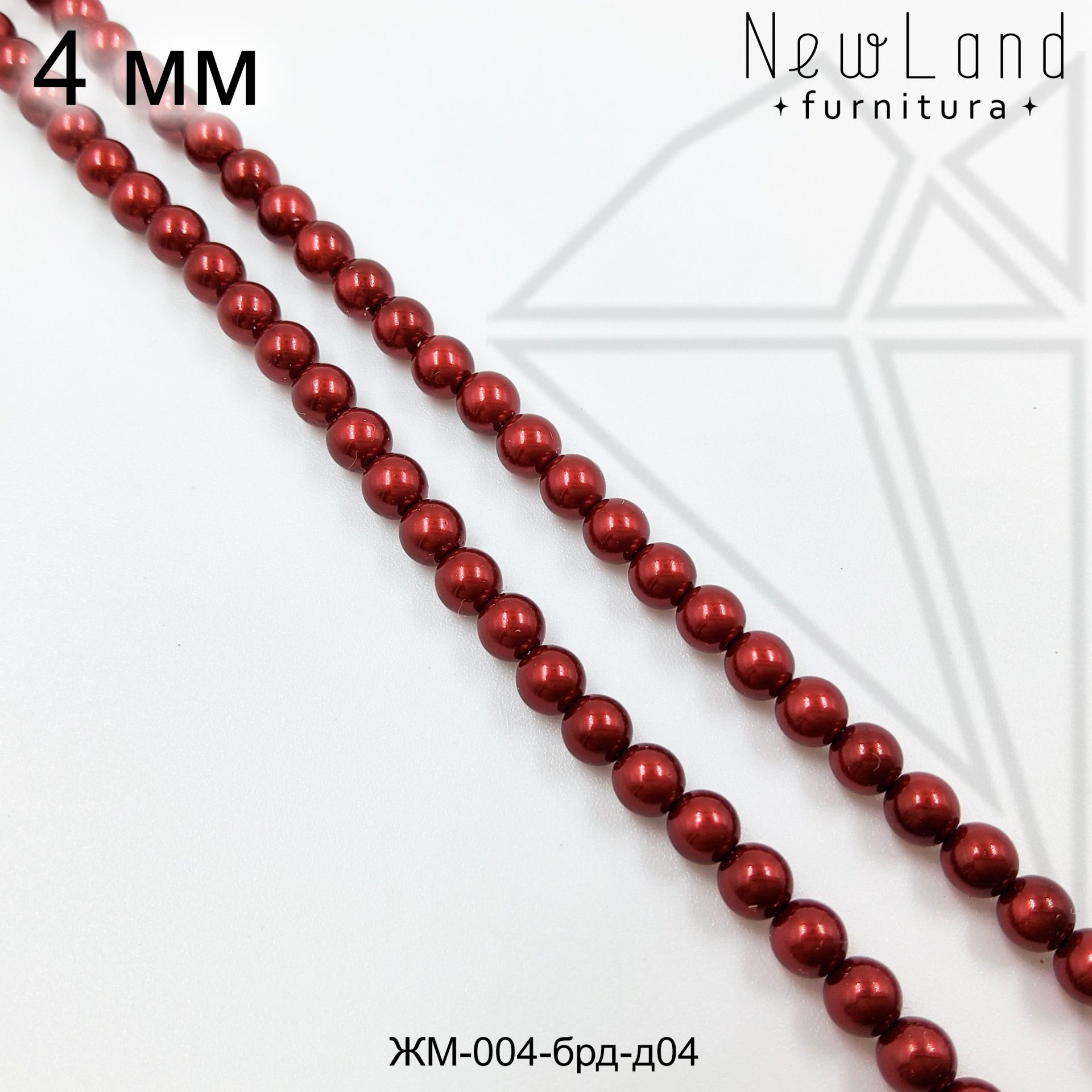 Жемчуг майорка круглой формы бордового цвета с блеском 4 мм.