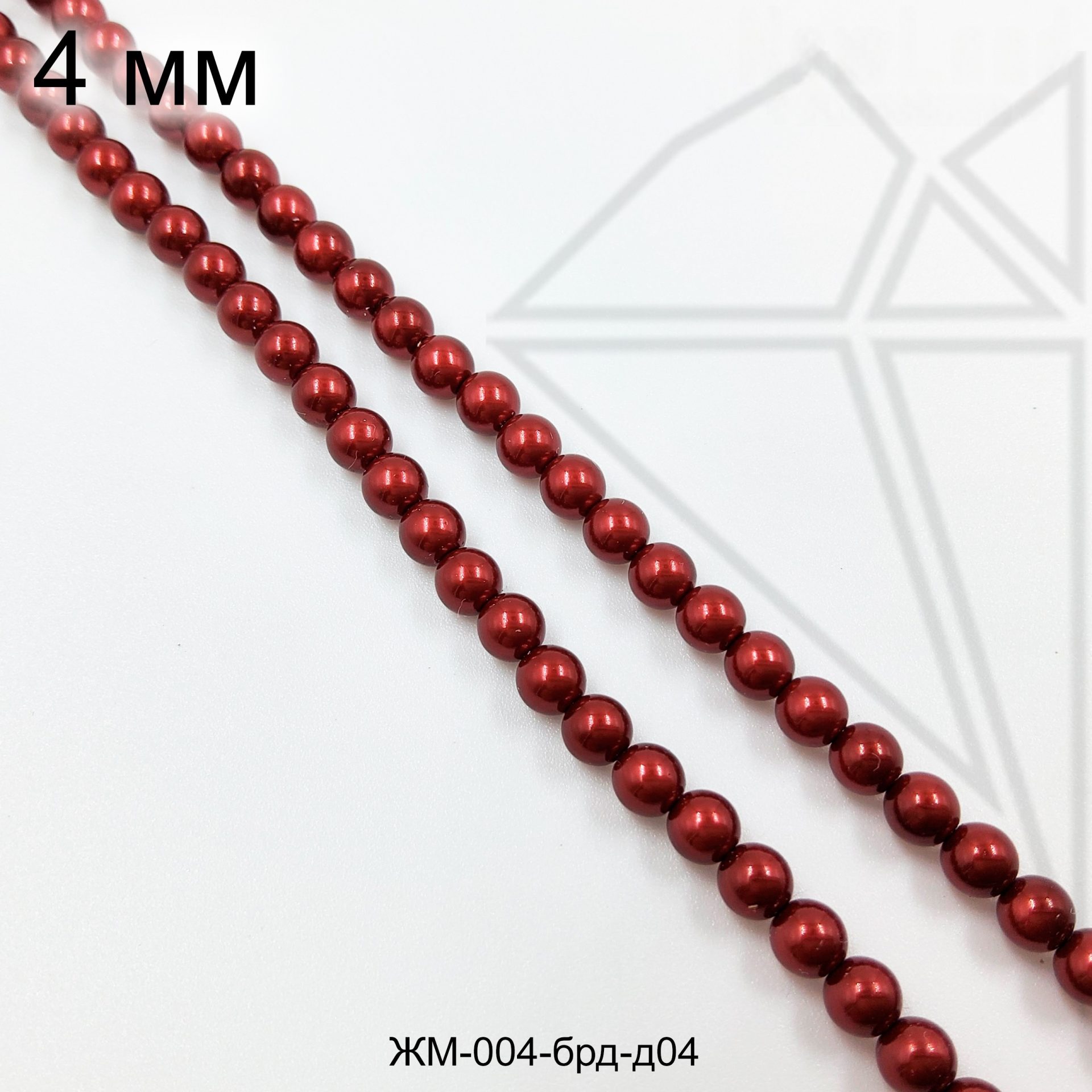 Жемчуг майорка круглой формы бордового цвета с блеском 4 мм.