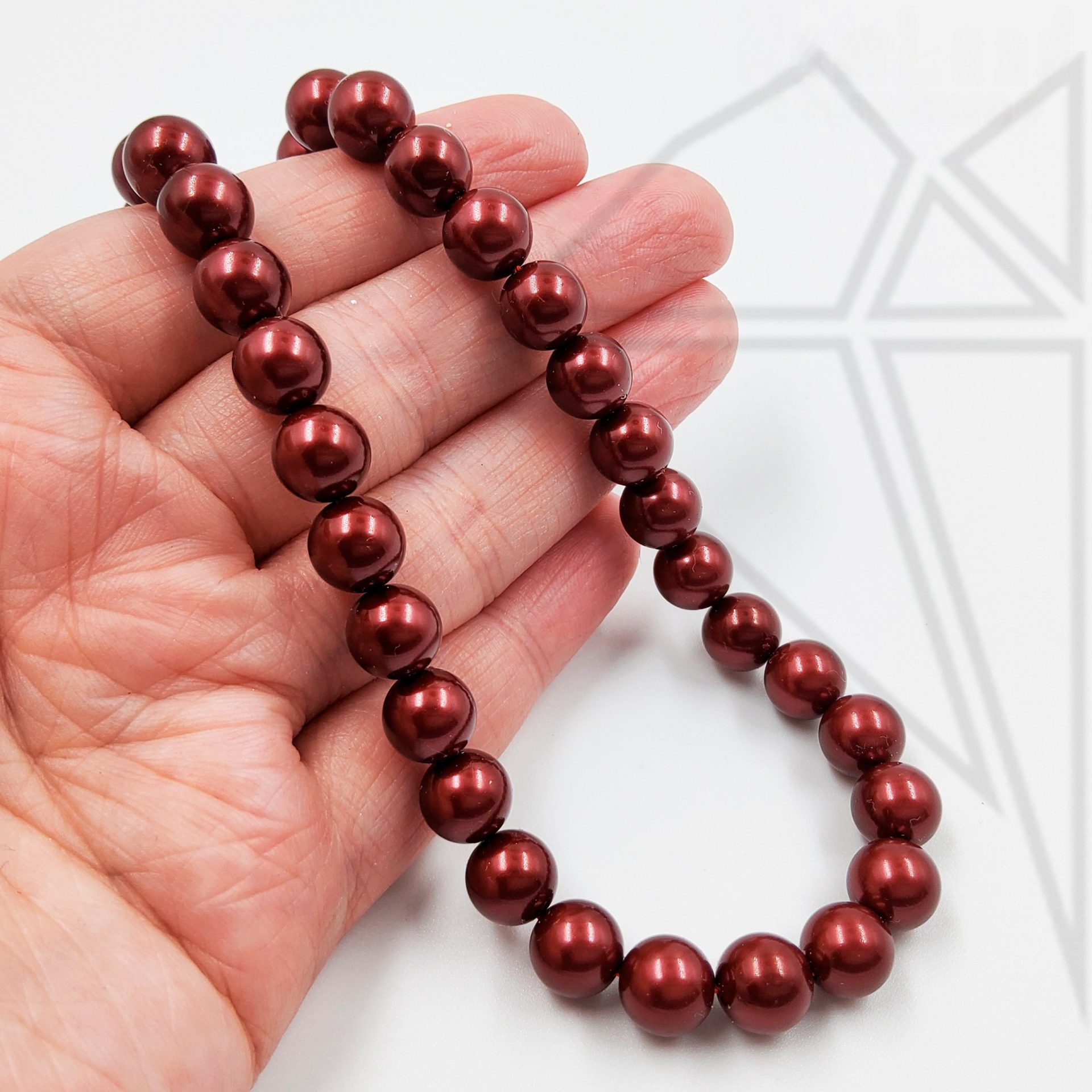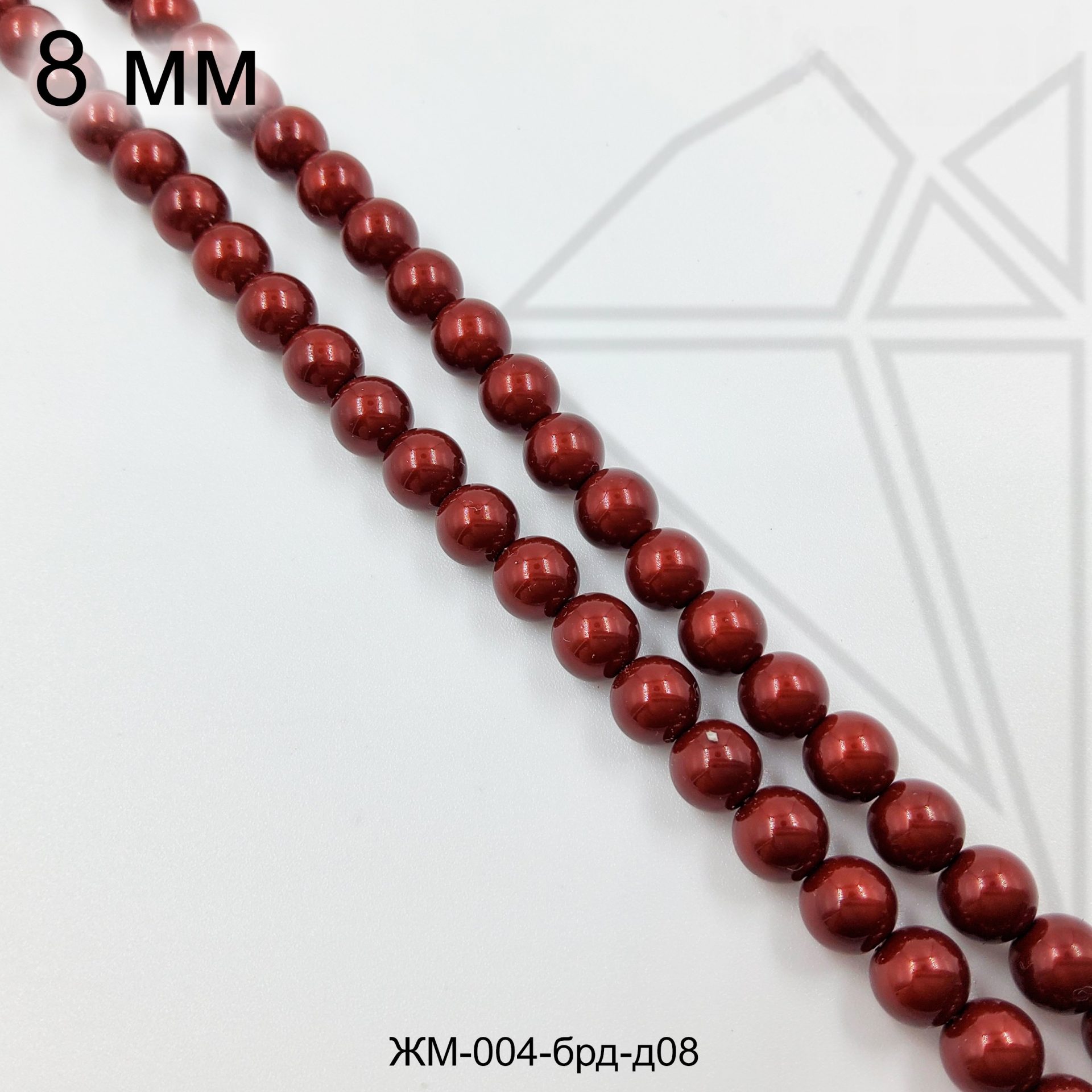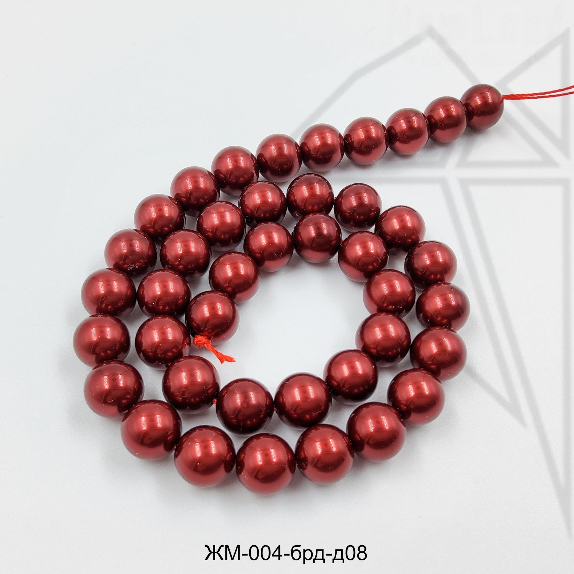 Жемчуг майорка круглой формы бордового цвета с блеском 8 мм.