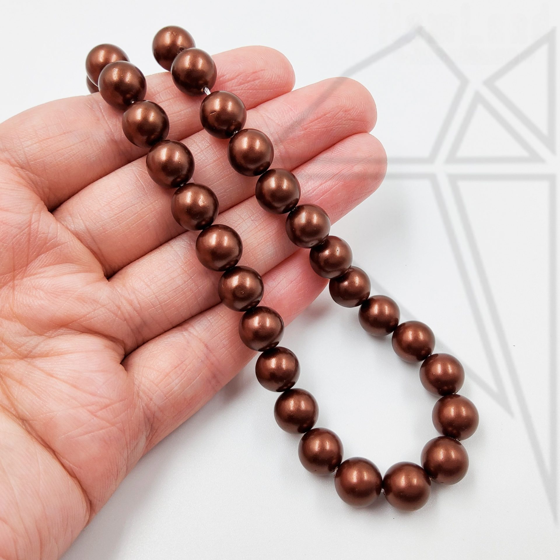 Жемчуг майорка круглой формы коричневого цвета.