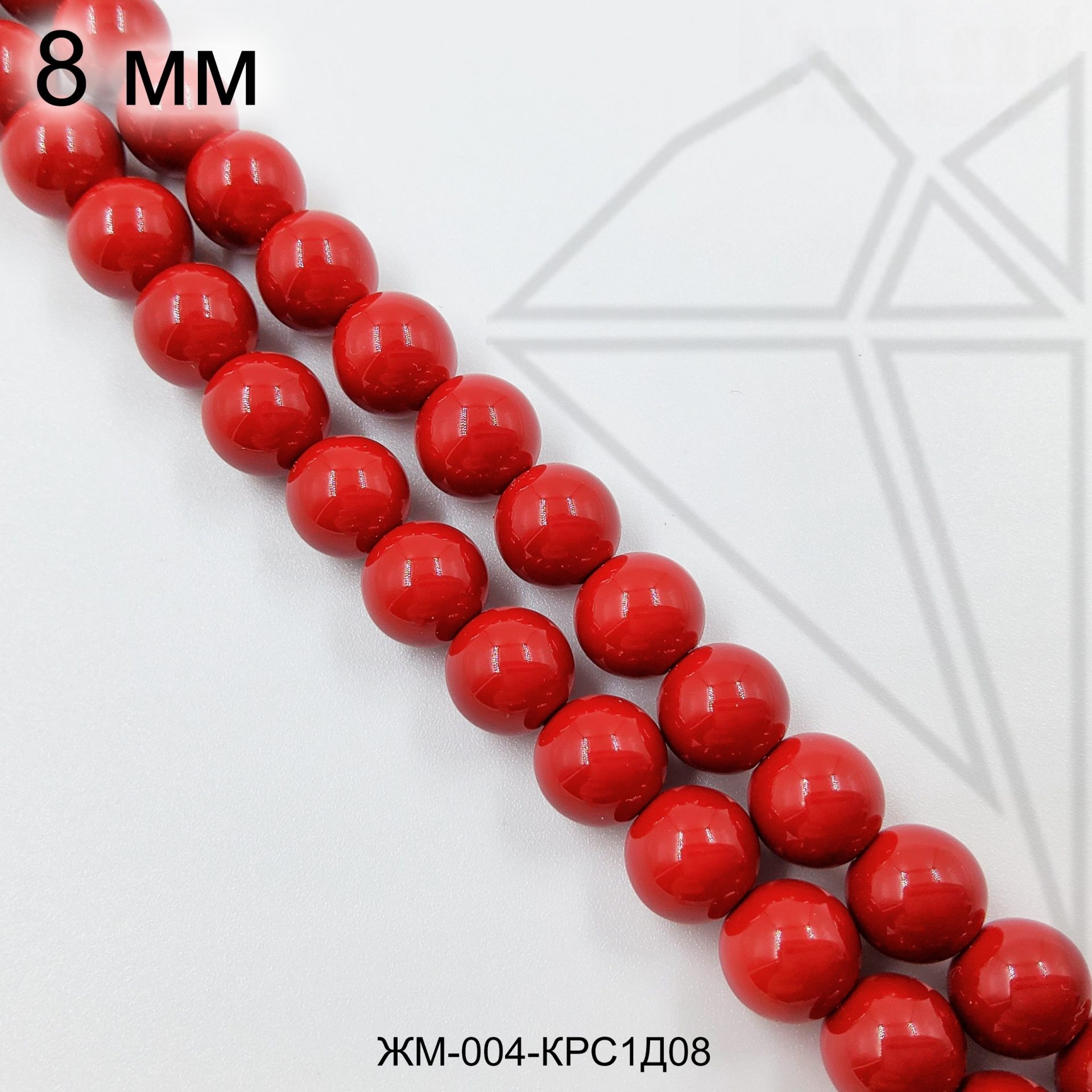 Жемчуг майорка круглой формы красного цвета.