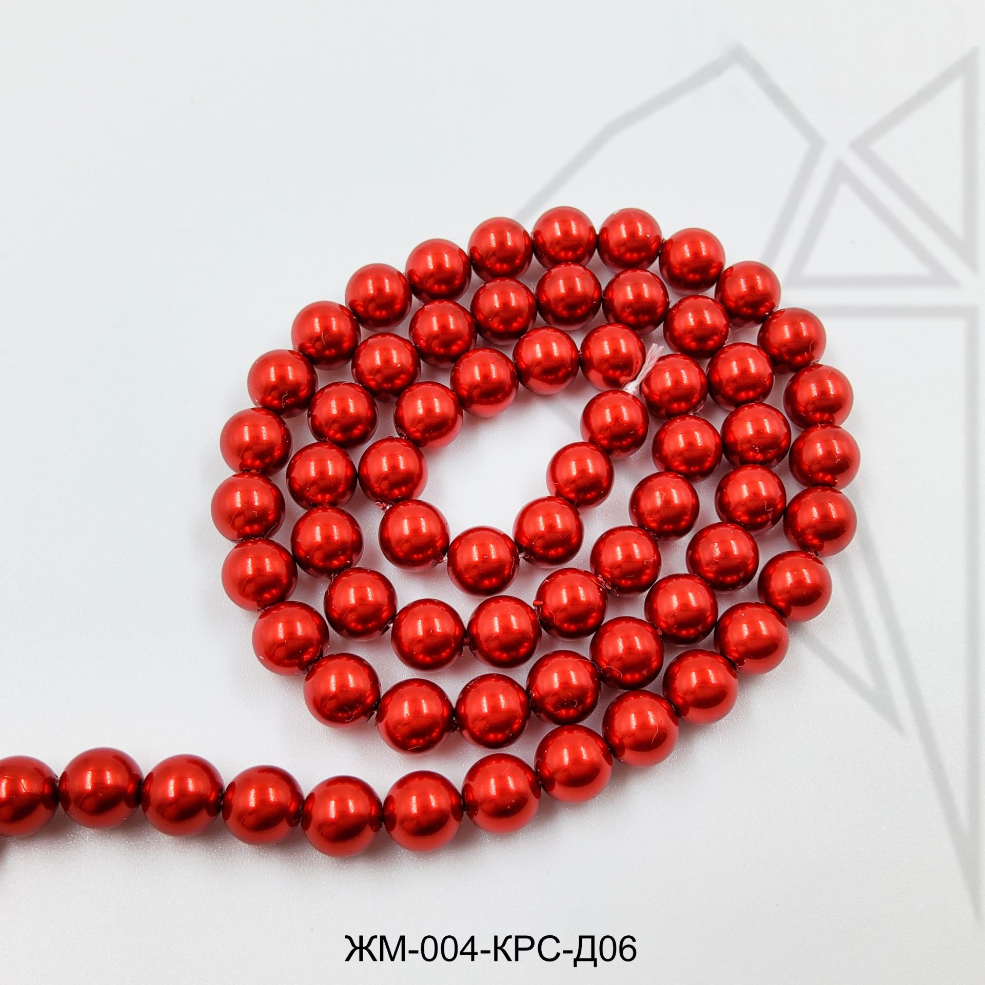 Жемчуг майорка круглой формы красного цвета с блеском.