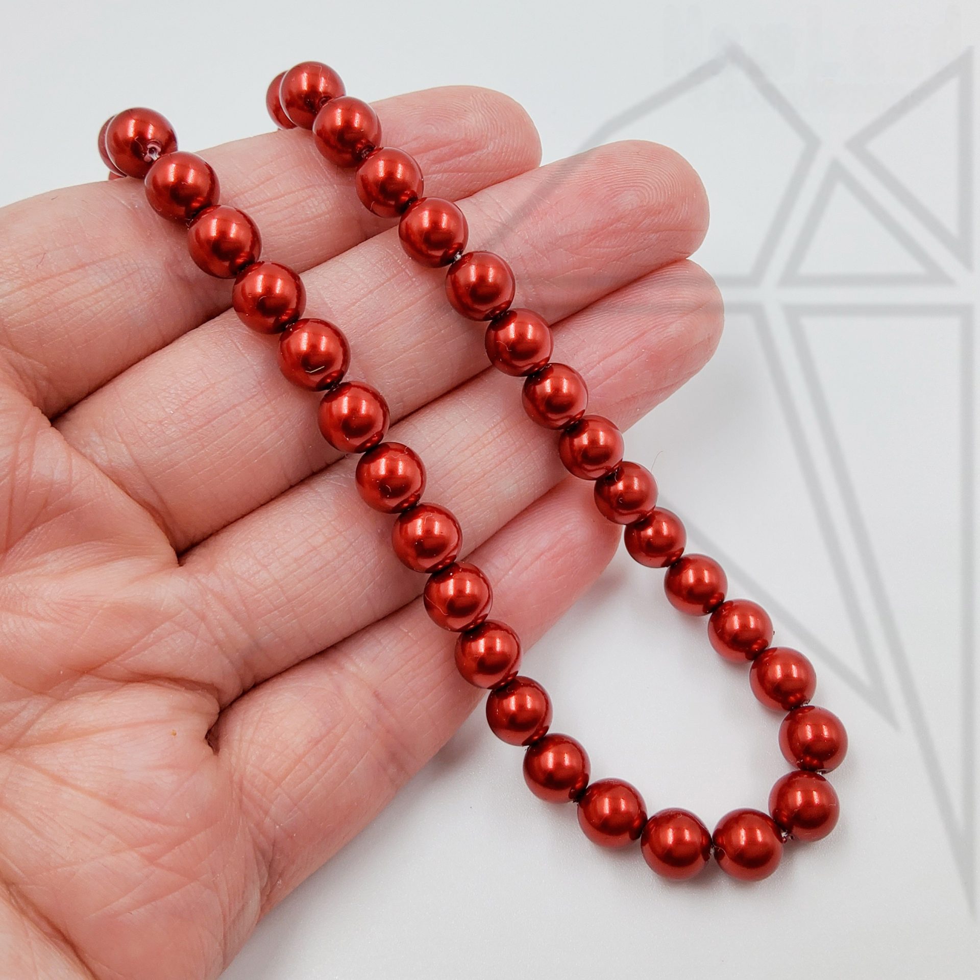 Жемчуг майорка круглой формы красного цвета.