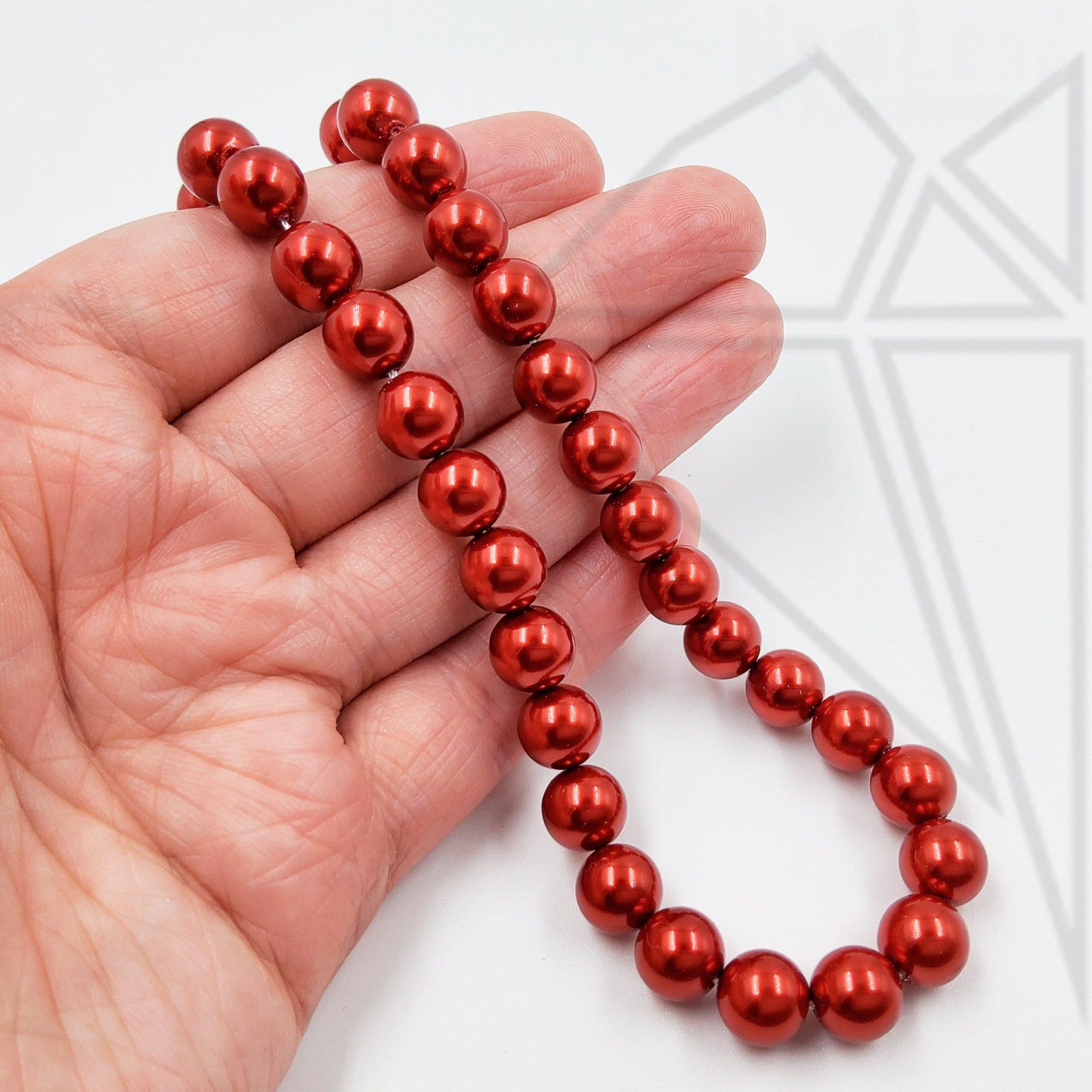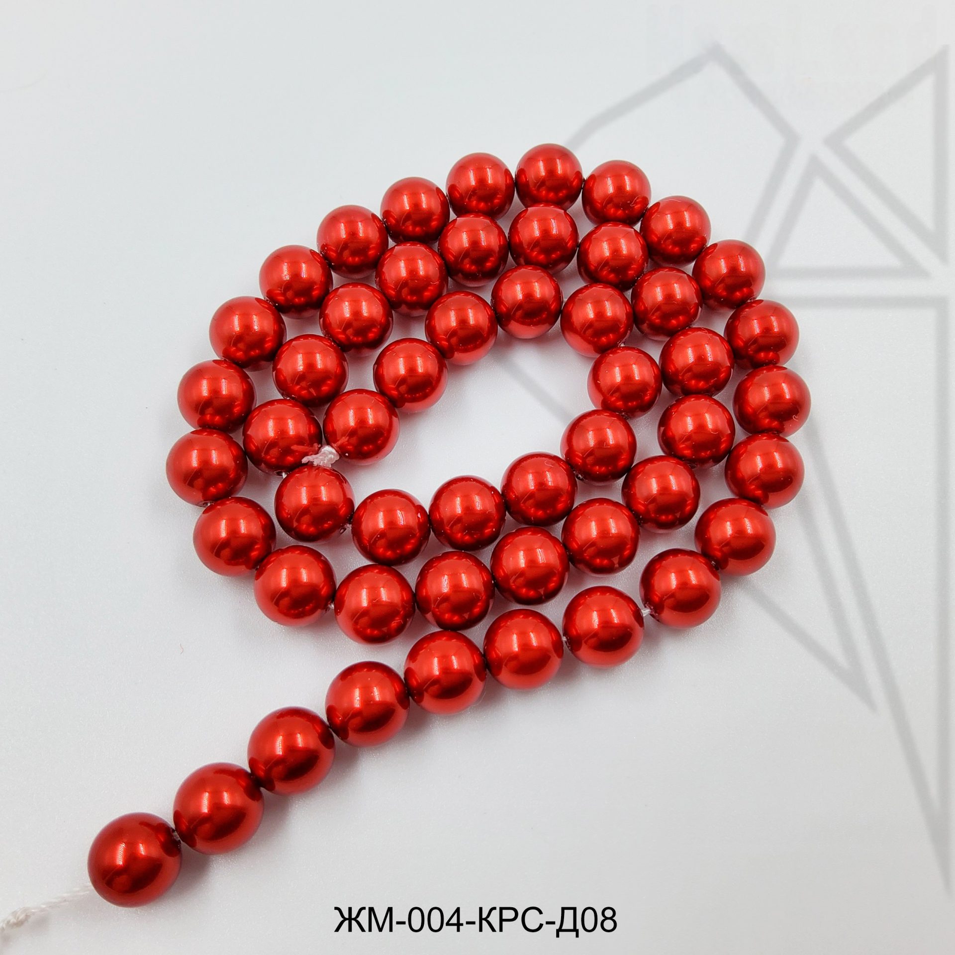 Жемчуг майорка круглой формы красного цвета с блеском.