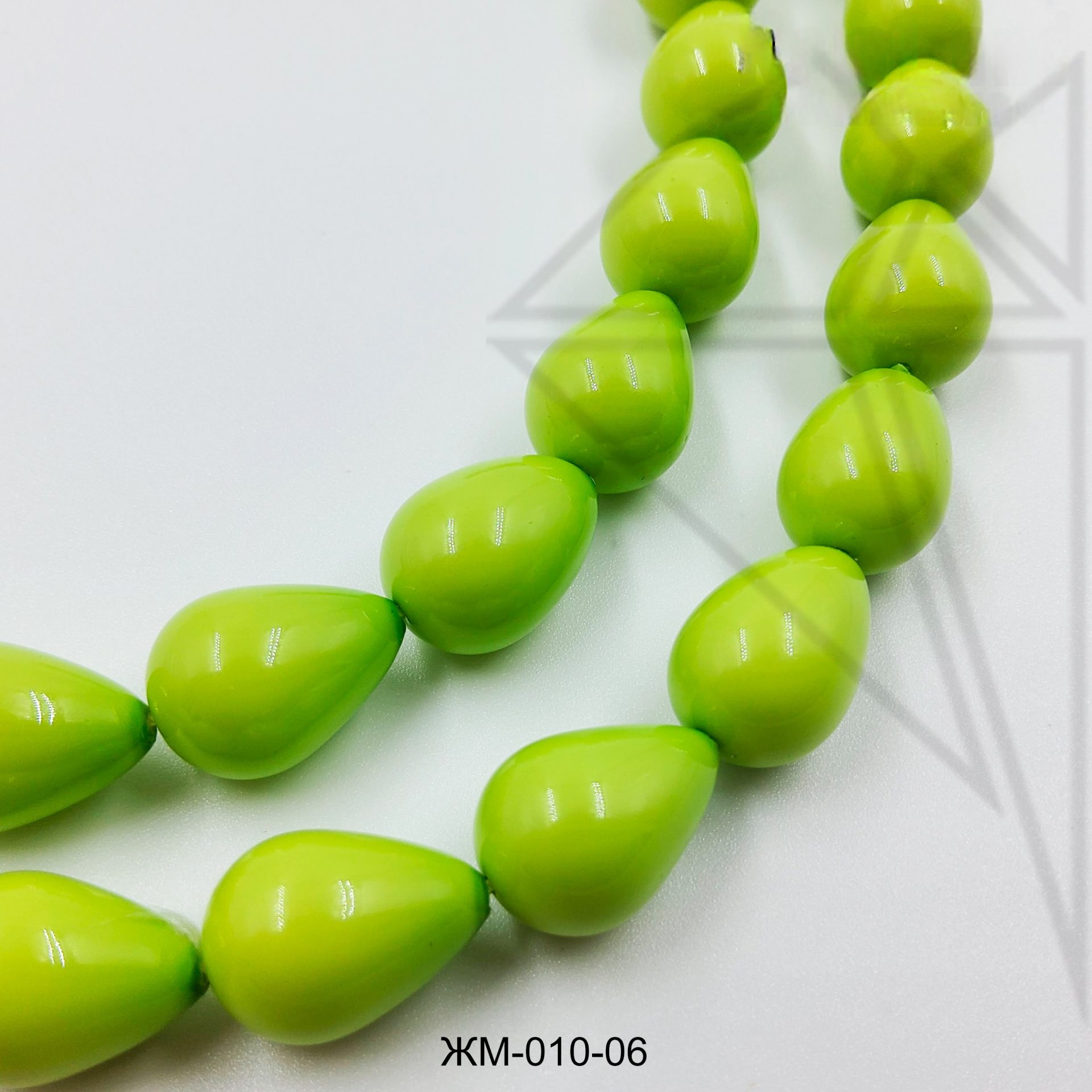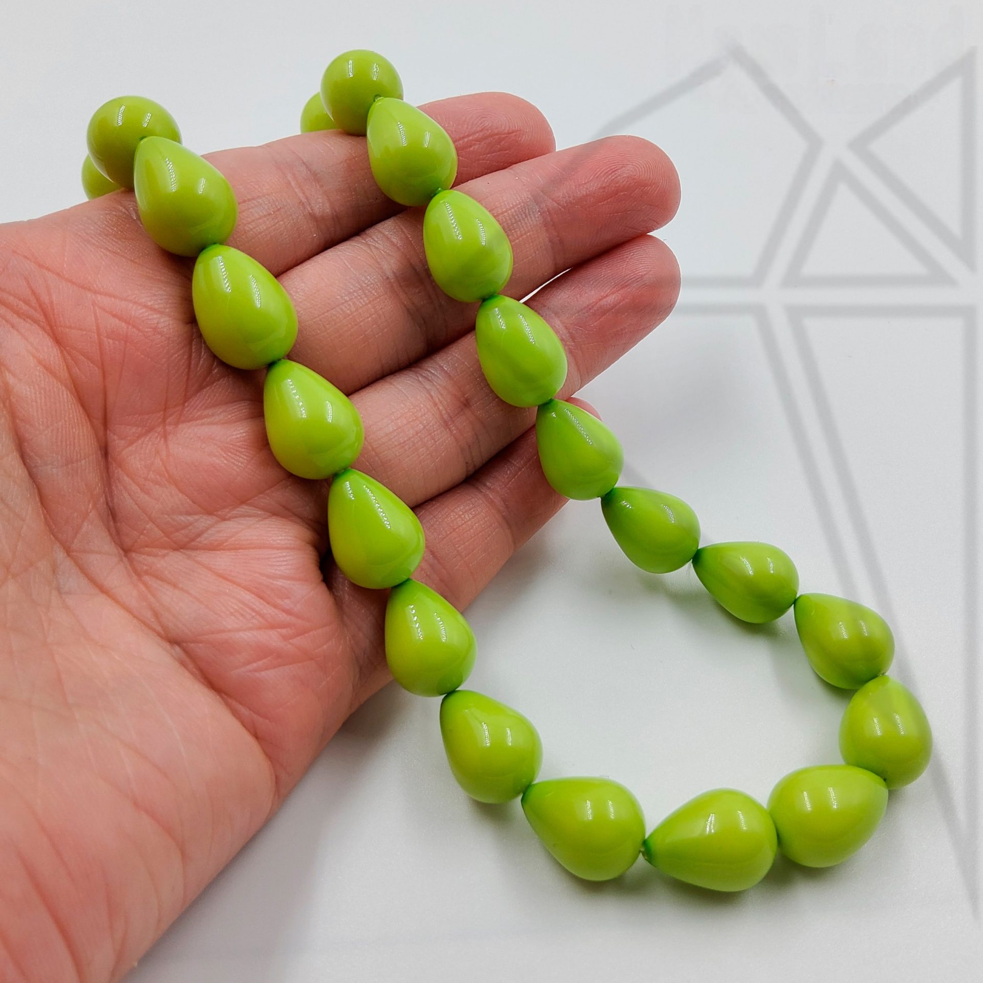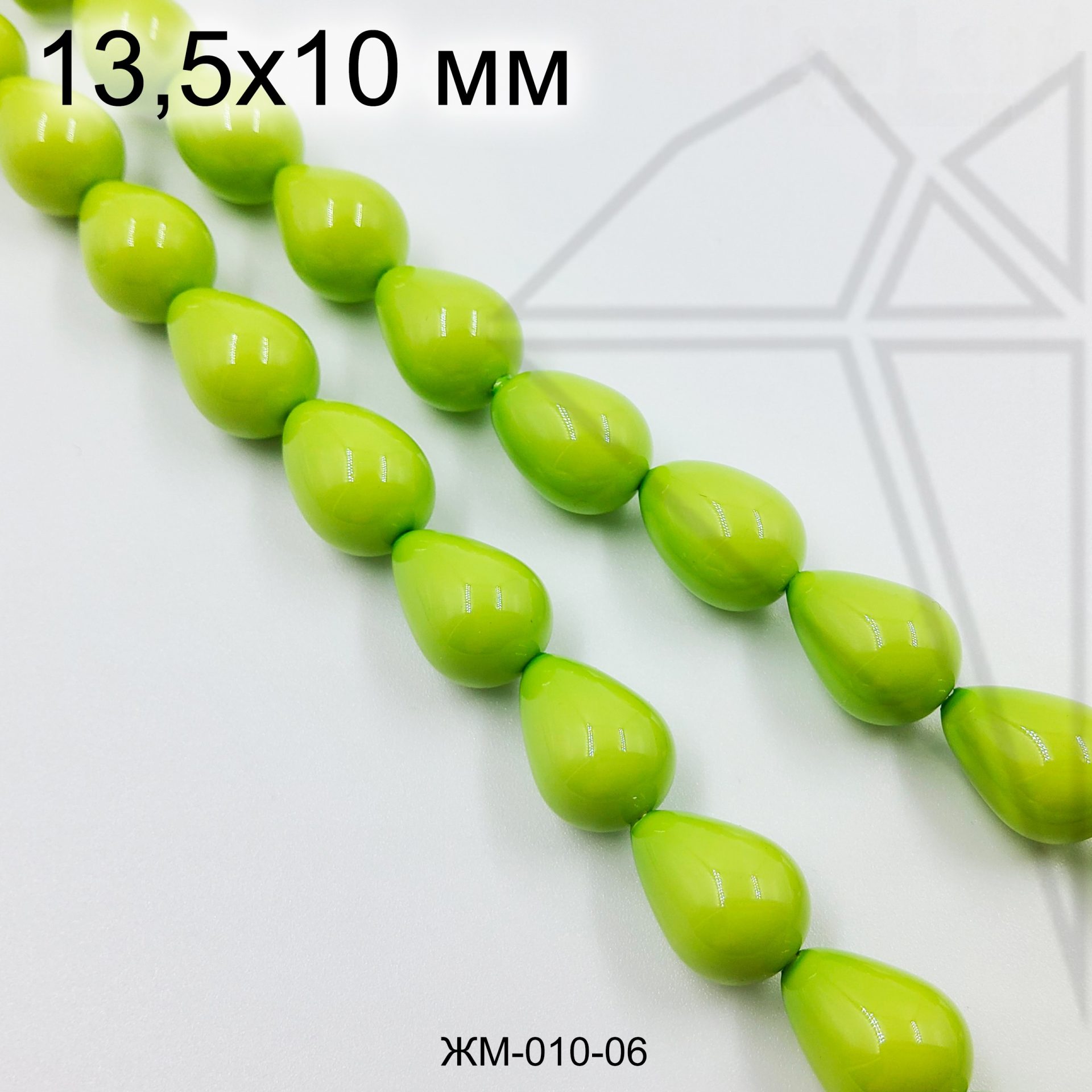 Жемчуг майорка в форме капли 13,5х10 мм салатового цвета