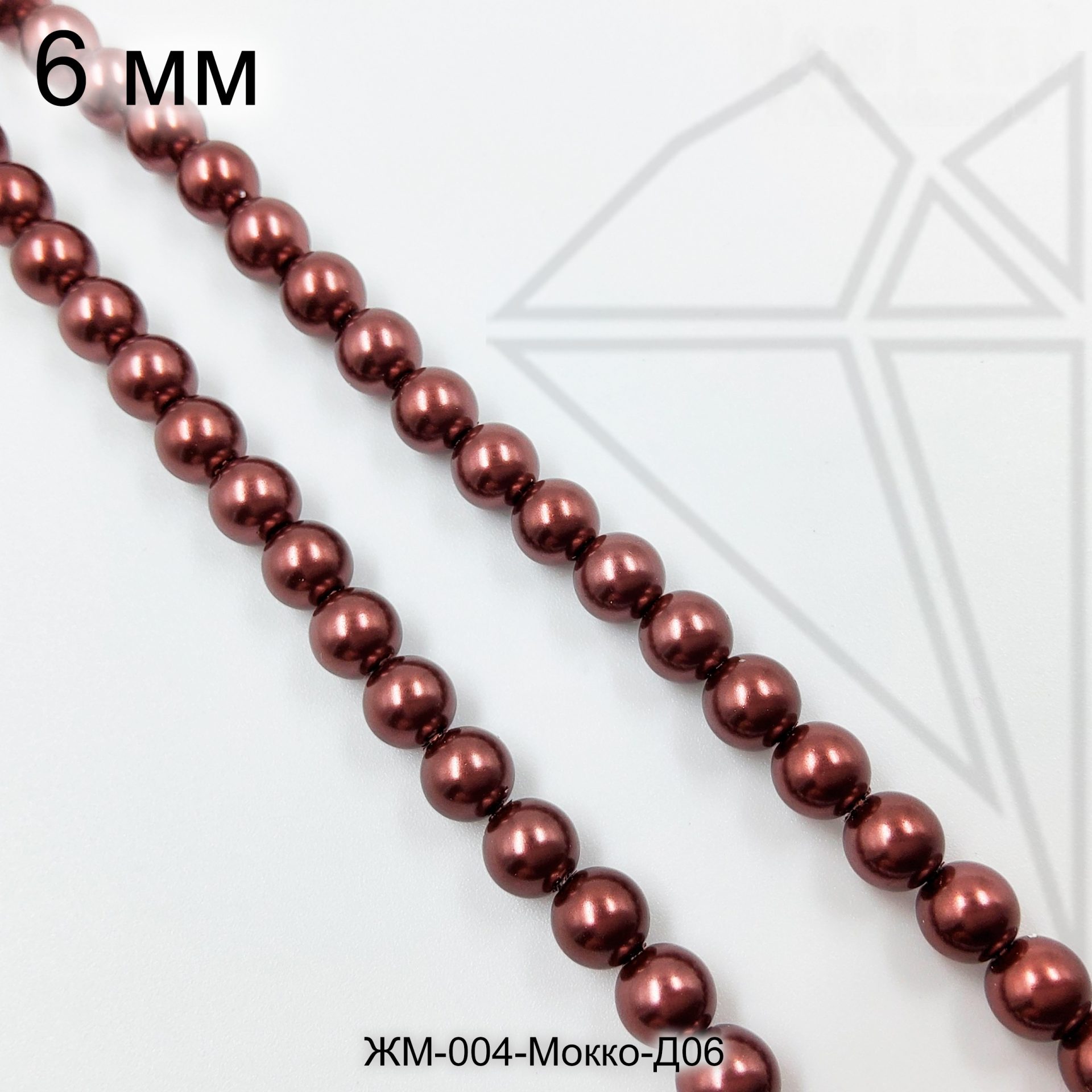 Жемчуг майорка круглой формы коричневого цвета (мокко) с блеском 6 мм.