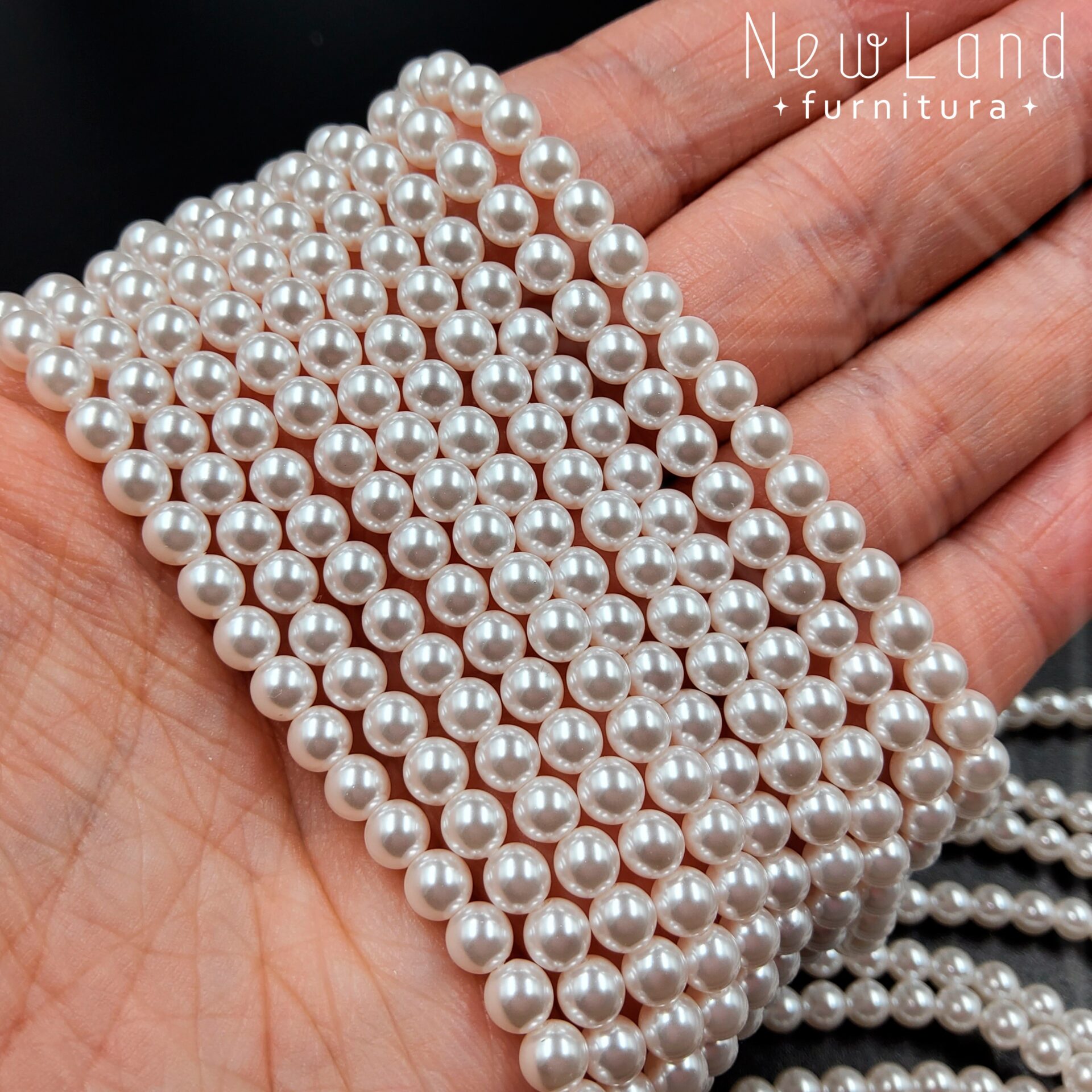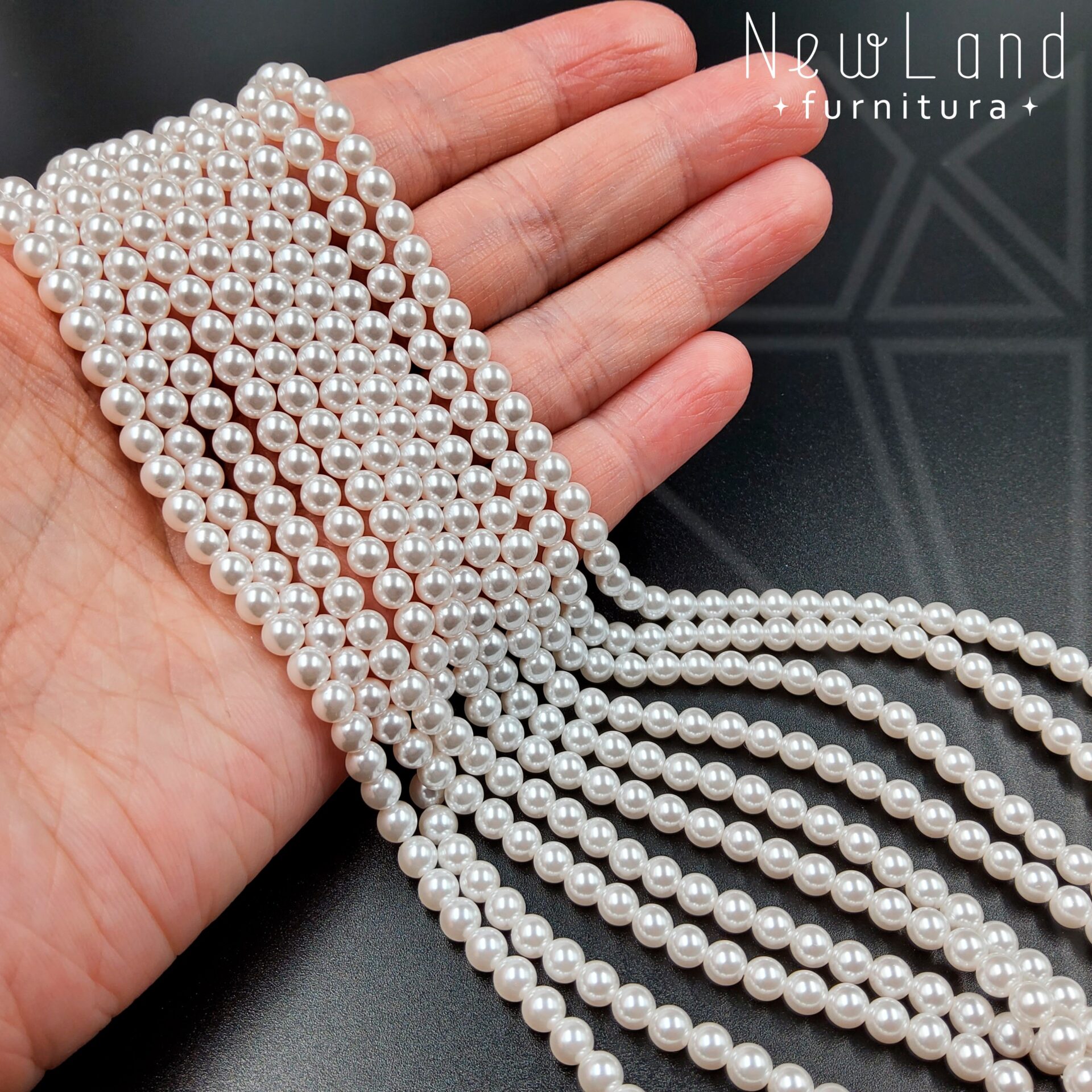 Жемчуг майорка круглой формы белого цвета с перламутровым покрытием.