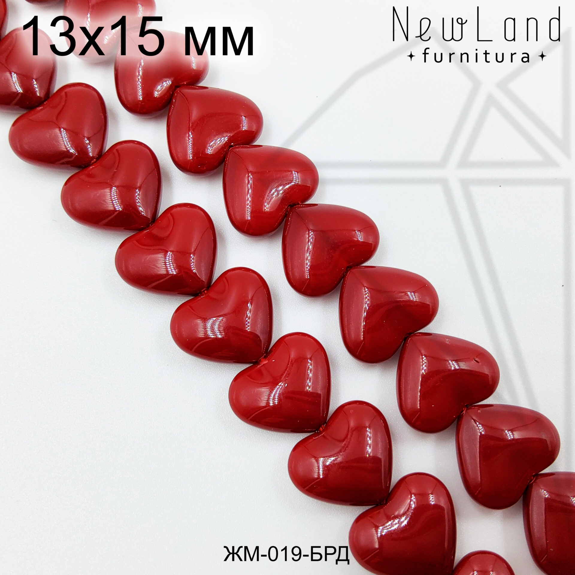 Жемчуг майорка сердце бордового цвета 13×15 мм.