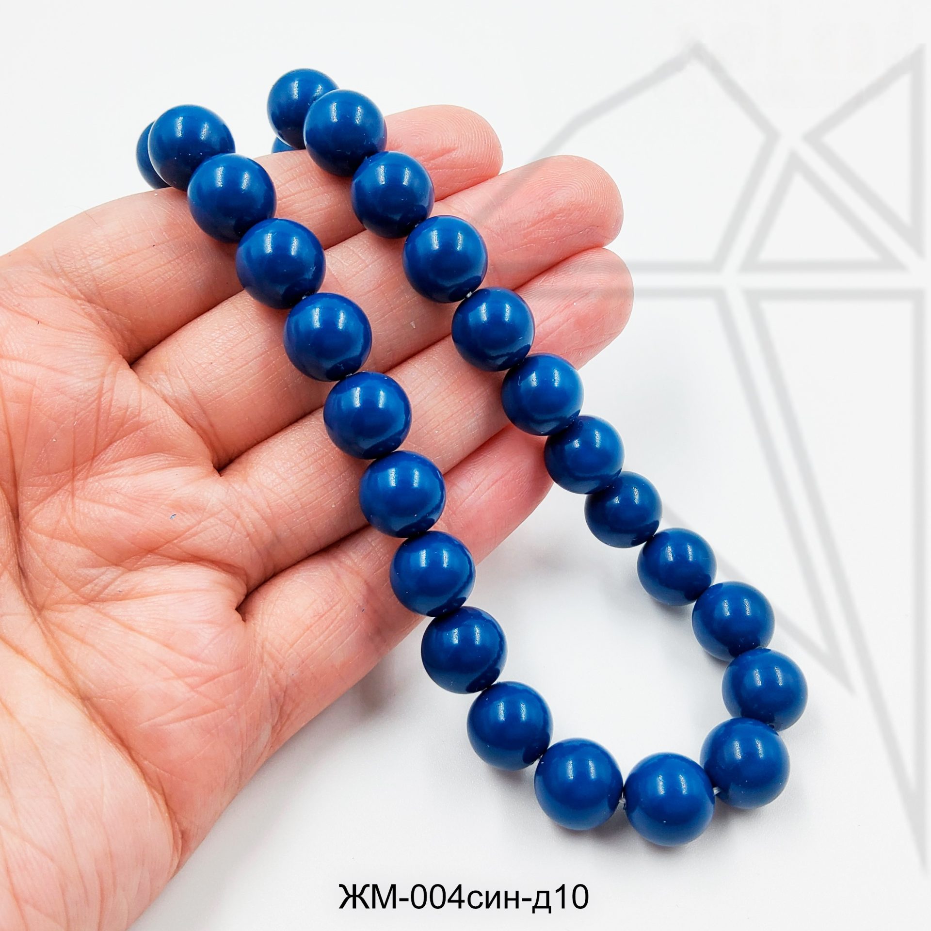 Жемчуг майорка круглой формы синего цвета.