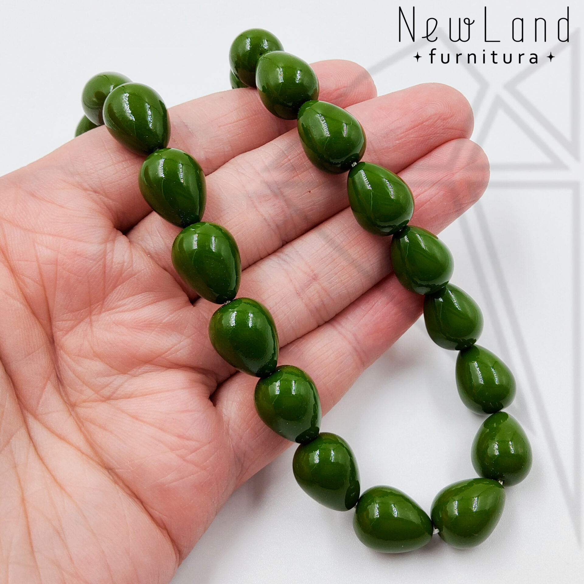 Жемчуг майорка в форме капли 13х10 мм зеленая цвета