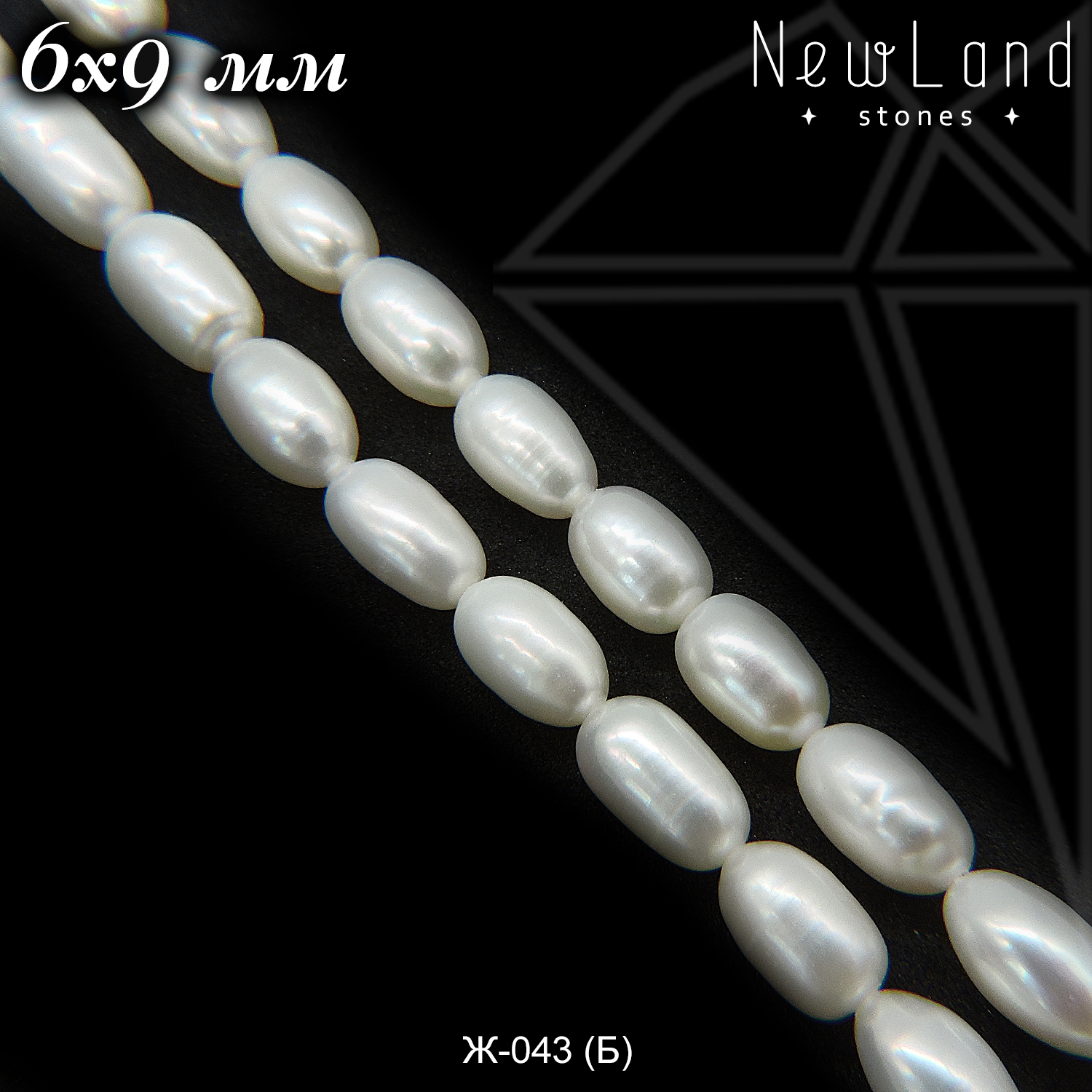 Жемчуг овальной формы рис 5х8 мм белого цвета с красивым перламутровым покрытием.